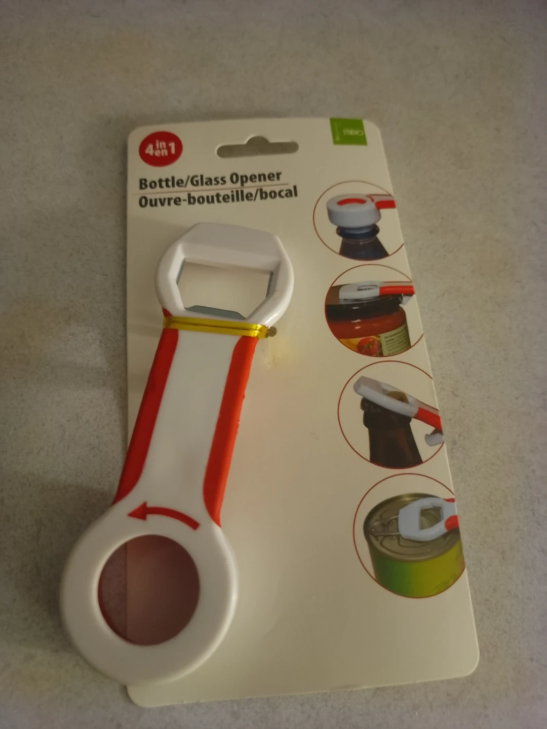 Selling a brand new Studio 4 in 1 bottle and glass opener! This handy tool helps you open bottles, glass jars, and cans with ease. It's a great addition to any kitchen