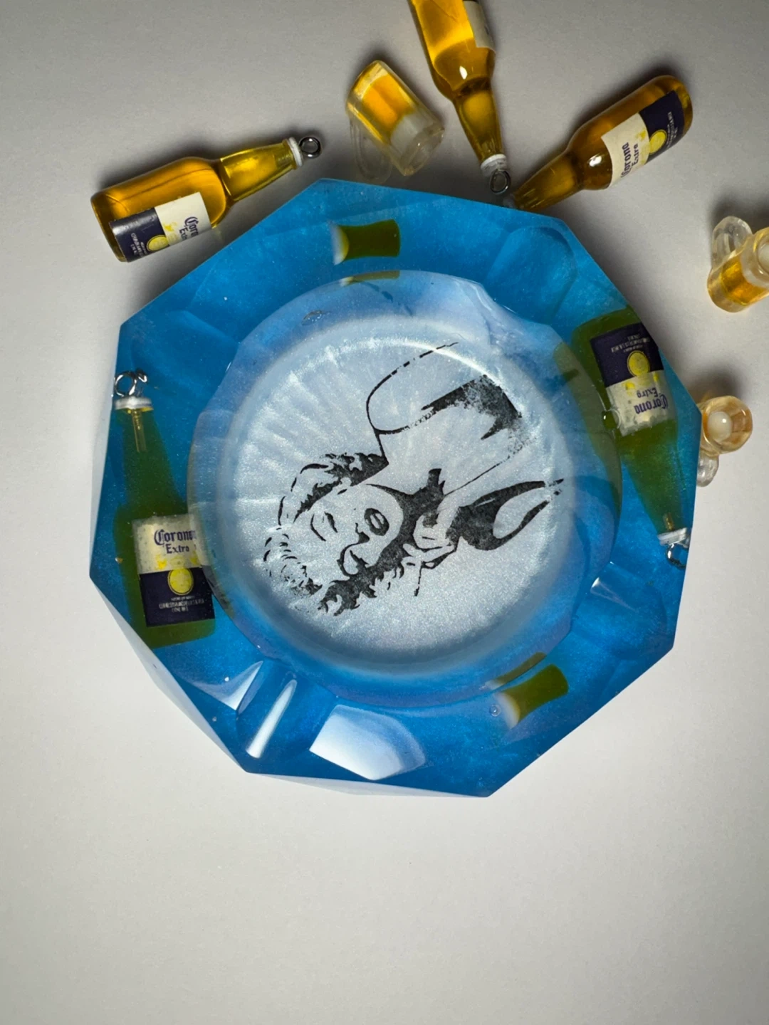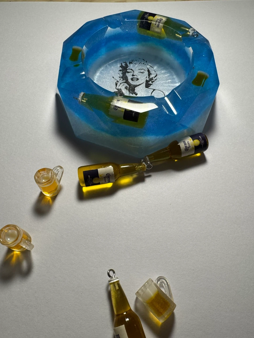 Unique resin ashtray featuring Corona bottles and a picture of Marilyn Monroe in the centre! Perfect for adding a touch of personality to your space. Nice gift for someone special .