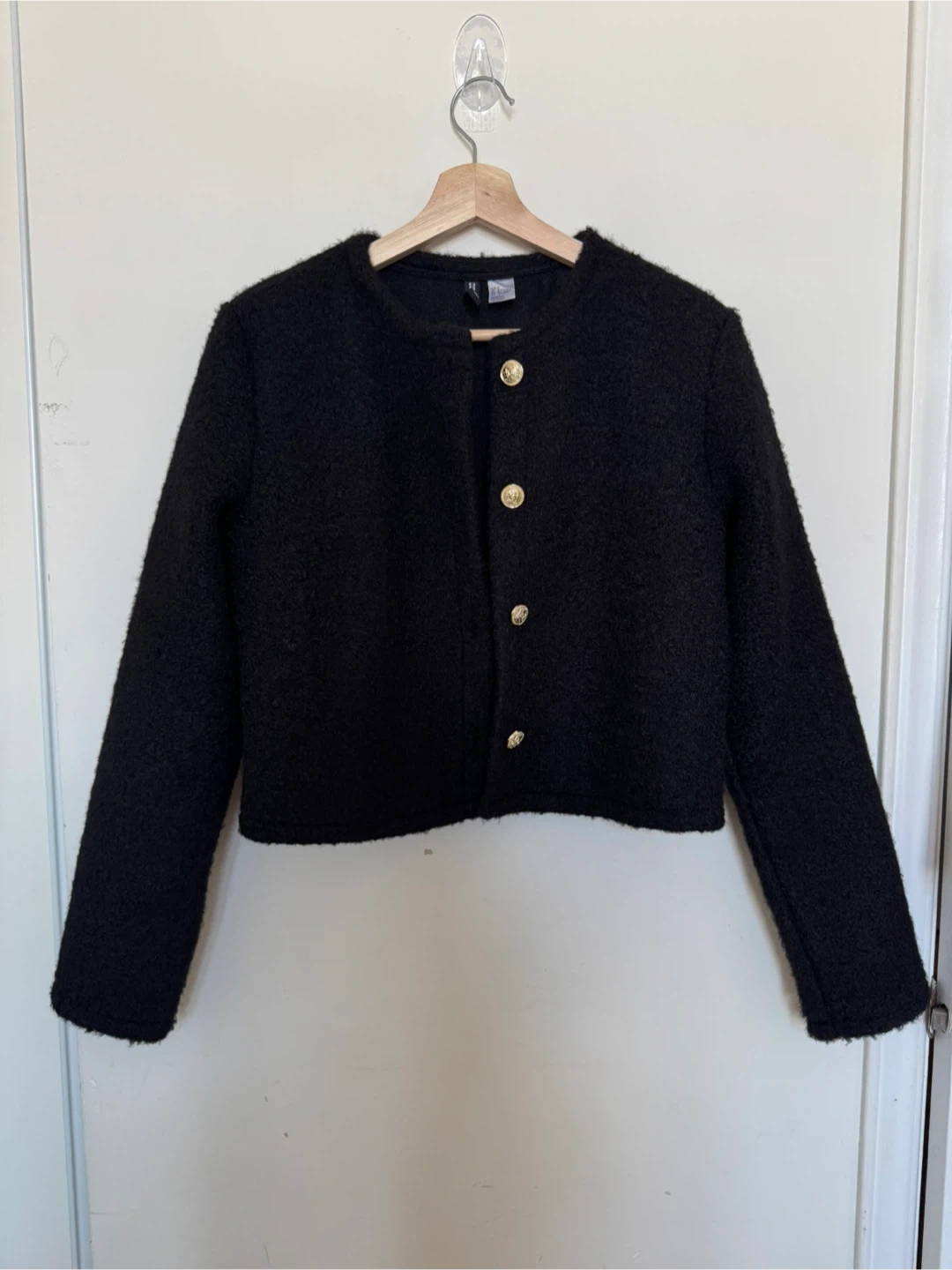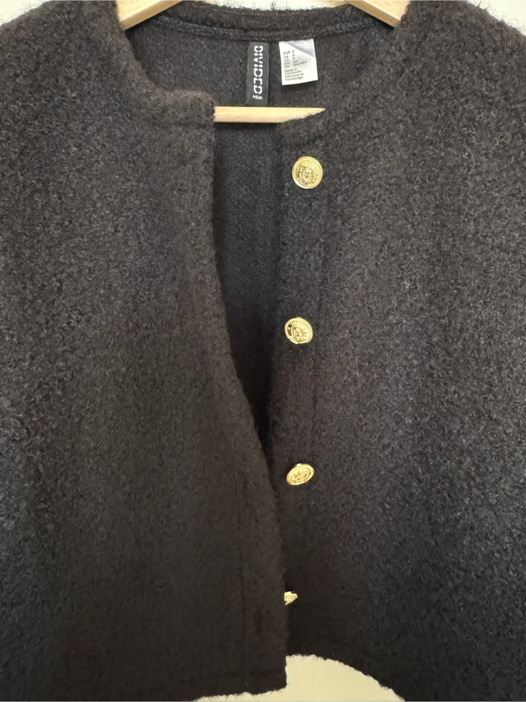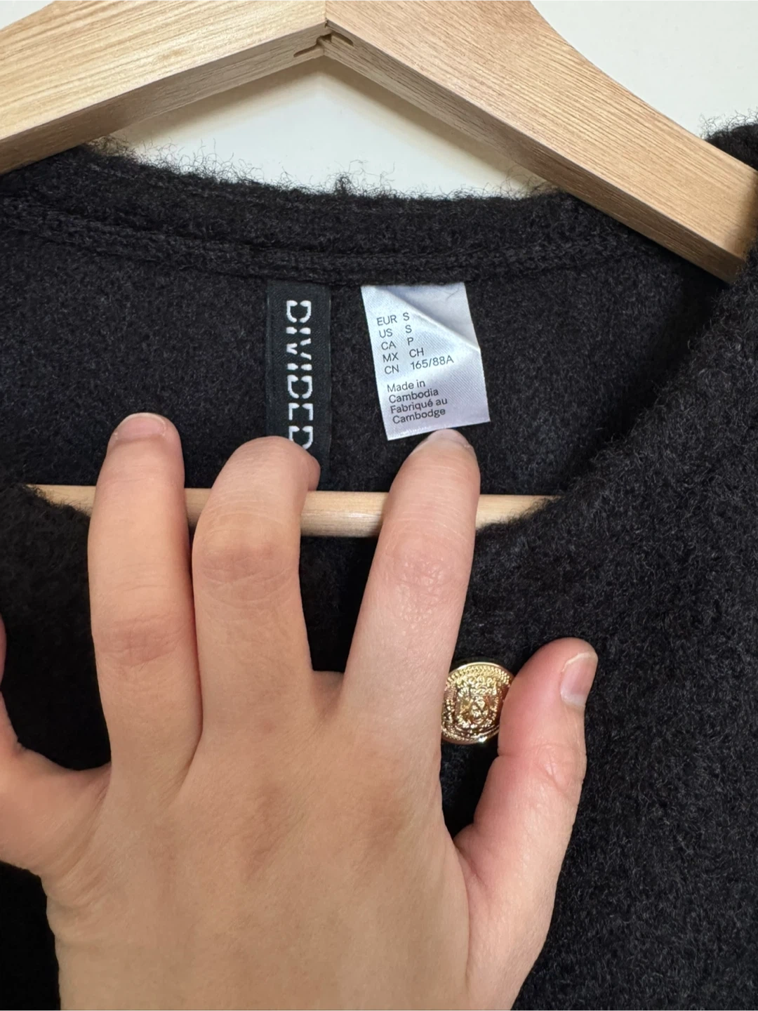 Selling a cute black cardigan from H&M's Divided line. It's a size small and features stylish gold buttons. Perfect for layering! Used only once.