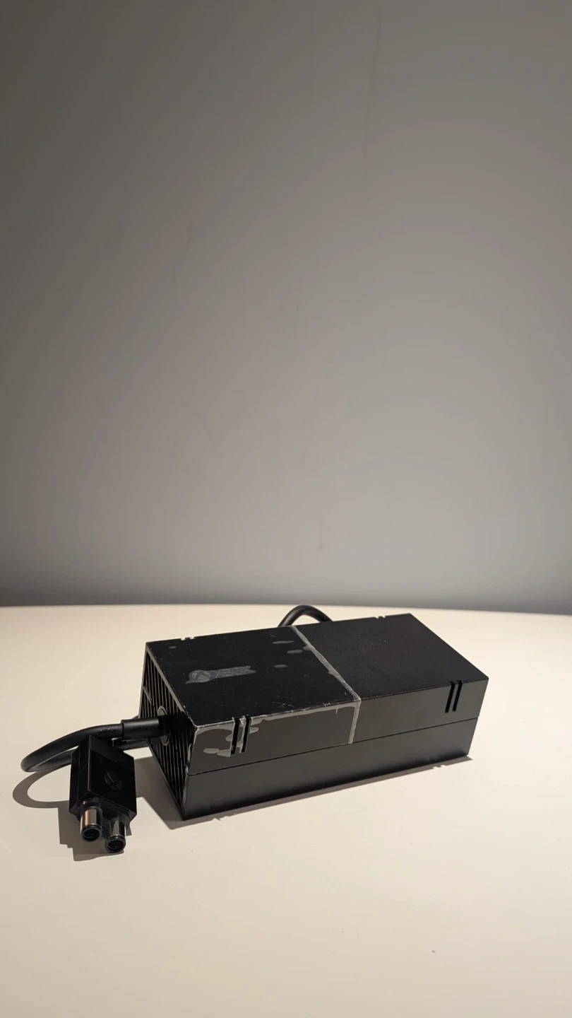 Xbox One console. It comes with the power adapter but no controller. The console is in used condition, but still works great! The original box is included.
