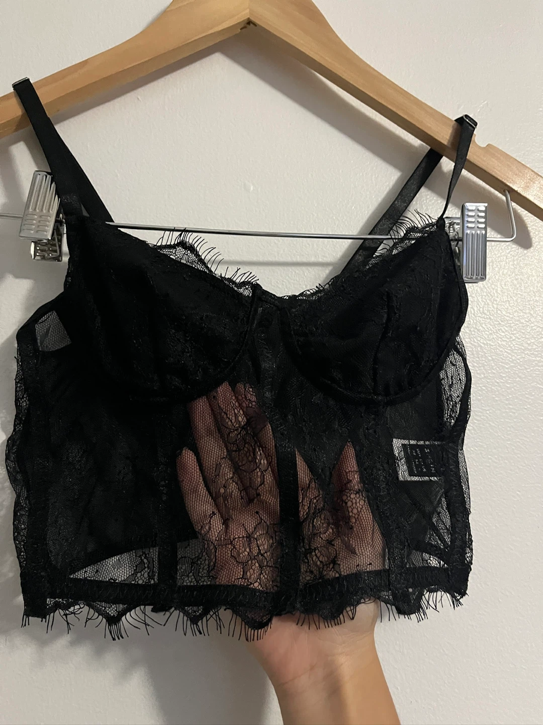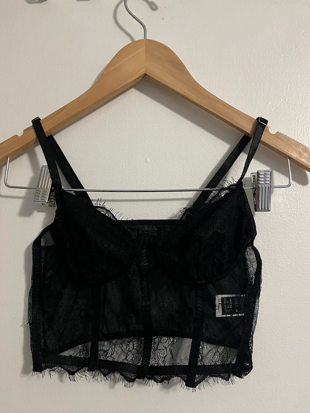 Selling a cute Shein black lace corset top/bralette! It's in great condition and is a size XS. Perfect for layering or wearing on its own!
