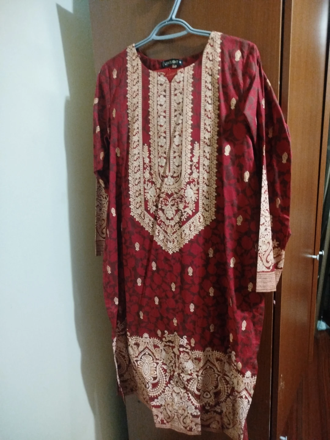 Selling a beautiful red kurti from Limelight! It features lovely embroidery and is made from 100% cotton. It's a size medium.