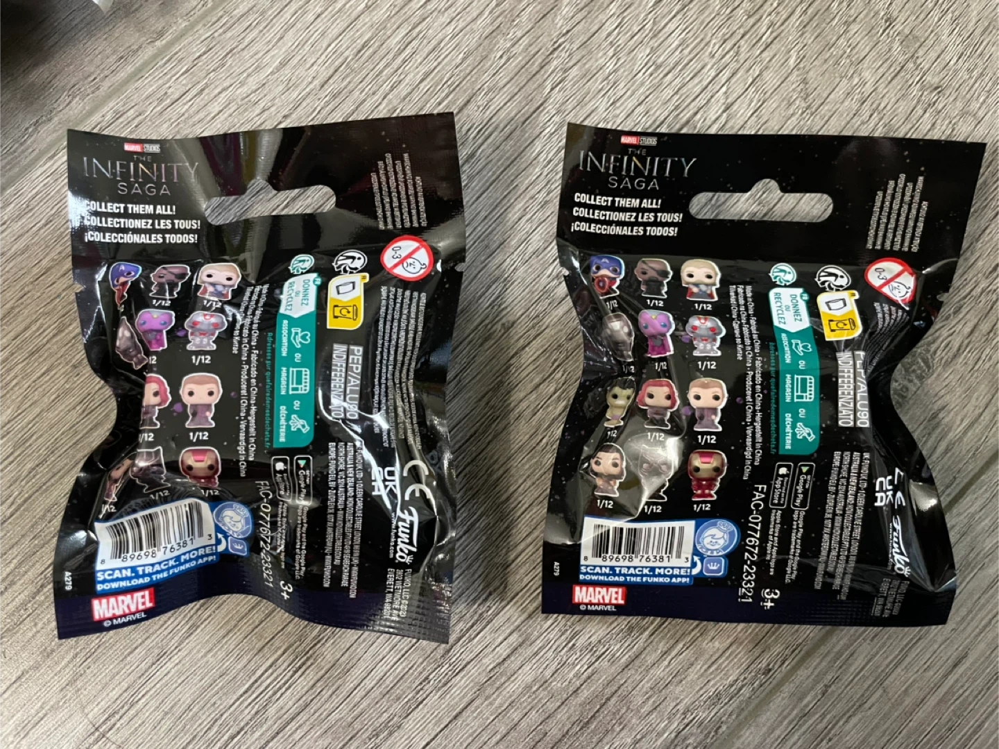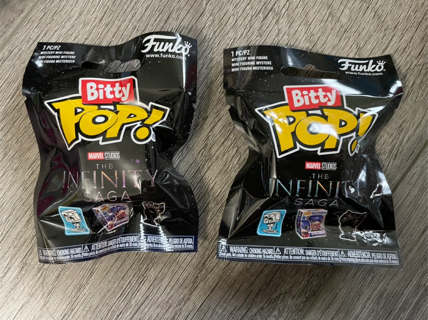 These are blind bags each containing one mystery Marvel Bitty Pop Figurine. The odds for each character is located on the photo of the back, but you can also look it up.