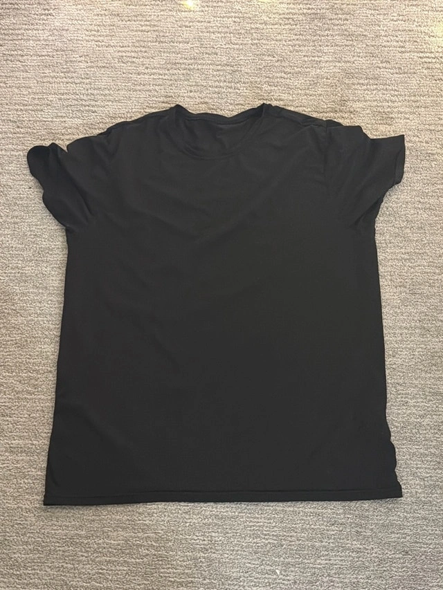 This gently worn black t-shirt is a versatile addition to any wardrobe. While it's in used condition, it has plenty of life left and is ready for a new home. Looking to give this tee a new chapter! If the ad is up, it's still available.