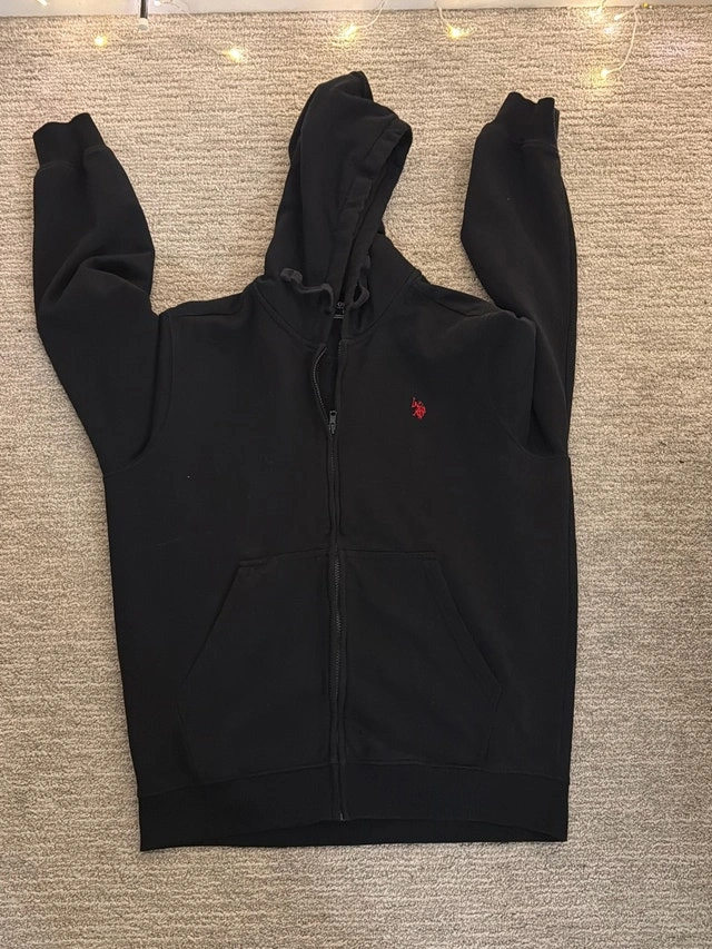 Elevate your casual wardrobe with this Polo black zip hoodie, a versatile and comfortable piece perfect for layering. This used hoodie features a full zip closure, a drawstring hood, and the iconic Polo logo embroidered on the chest. Its classic black colour ensures it pairs well with almost anything. * Full zip closure * Drawstring hood * Embroidered Polo logo * Two front pockets This hoodie is in good condition. Based on similar hoodies sold on Kijiji, I'm pricing it at $40. If the ad is still up, the hoodie is still available, ready to find a new home and keep you cozy!