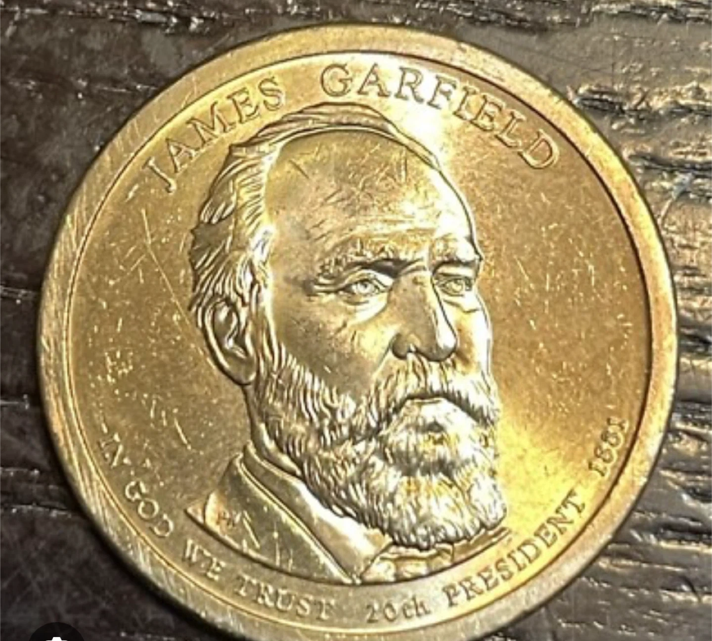 Selling a James Garfield US dollar coin. The coin commemorates the 20th President of the United States. The coin features an image of Garfield on one side and an eagle on the other.
