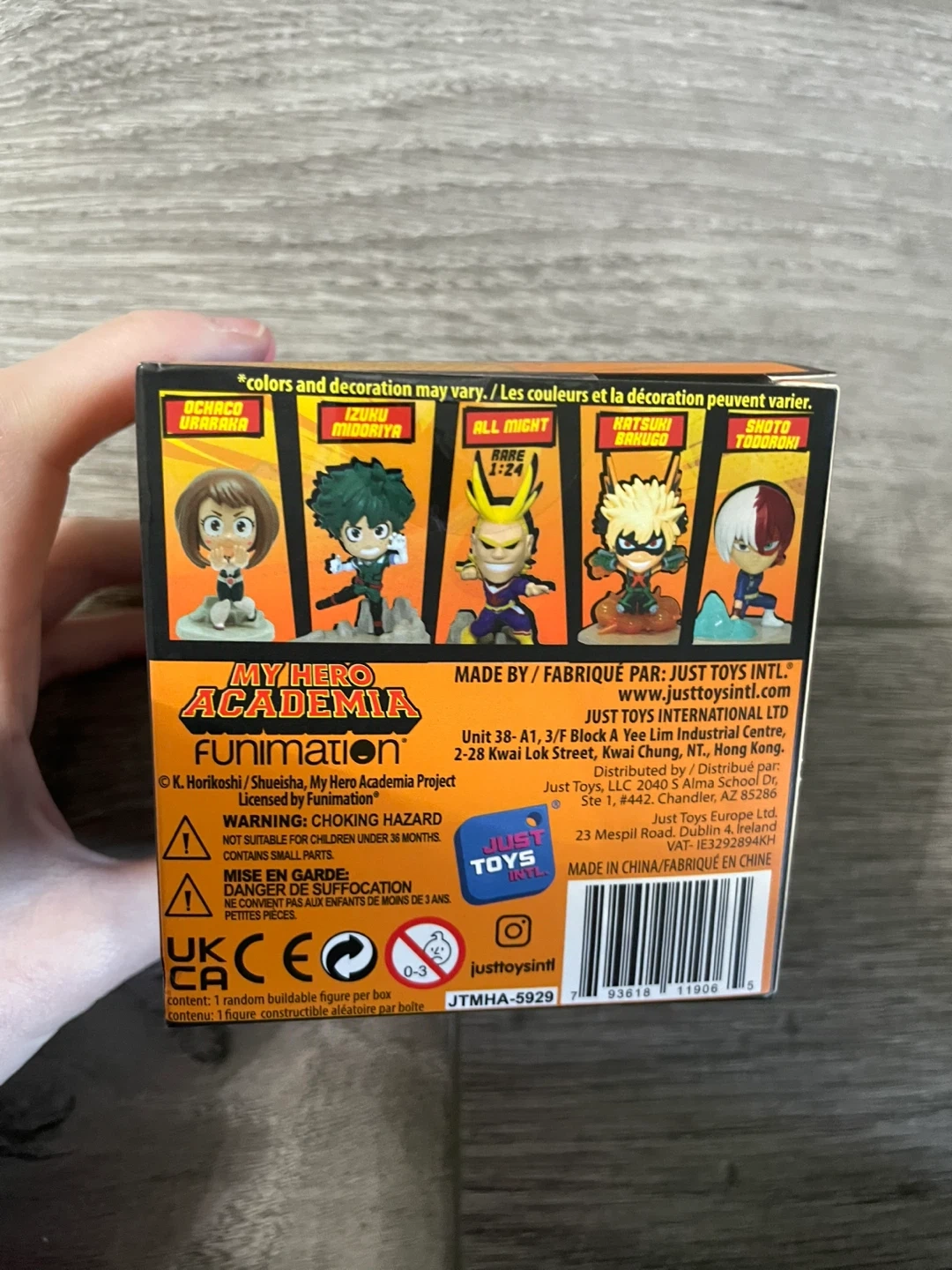 This is a blind box containing one mystery My Hero Academia Craftable figure. The available characters are located on the photo of the back, but you can also look it up.