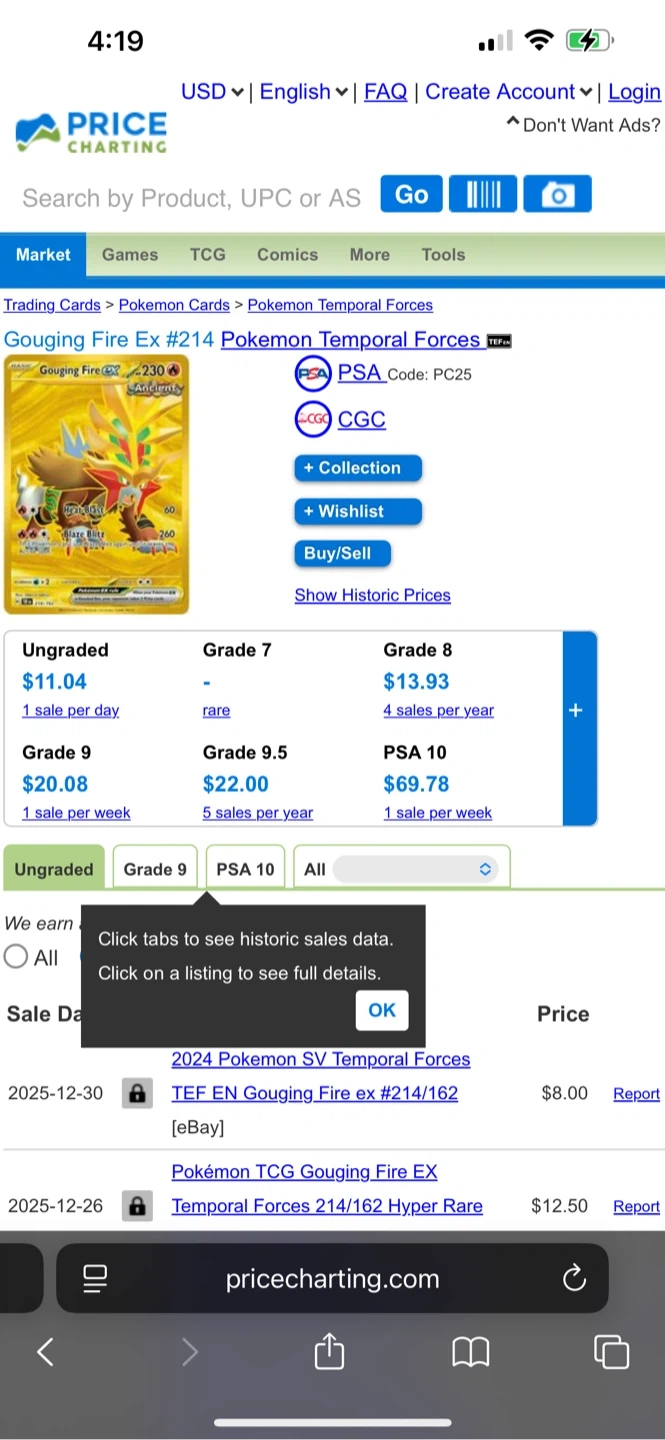 Selling a Gouging Fire Ex #214 Pokemon card. It's in great condition and ready for a new collection! This card is from the Pokemon Temporal Forces series.