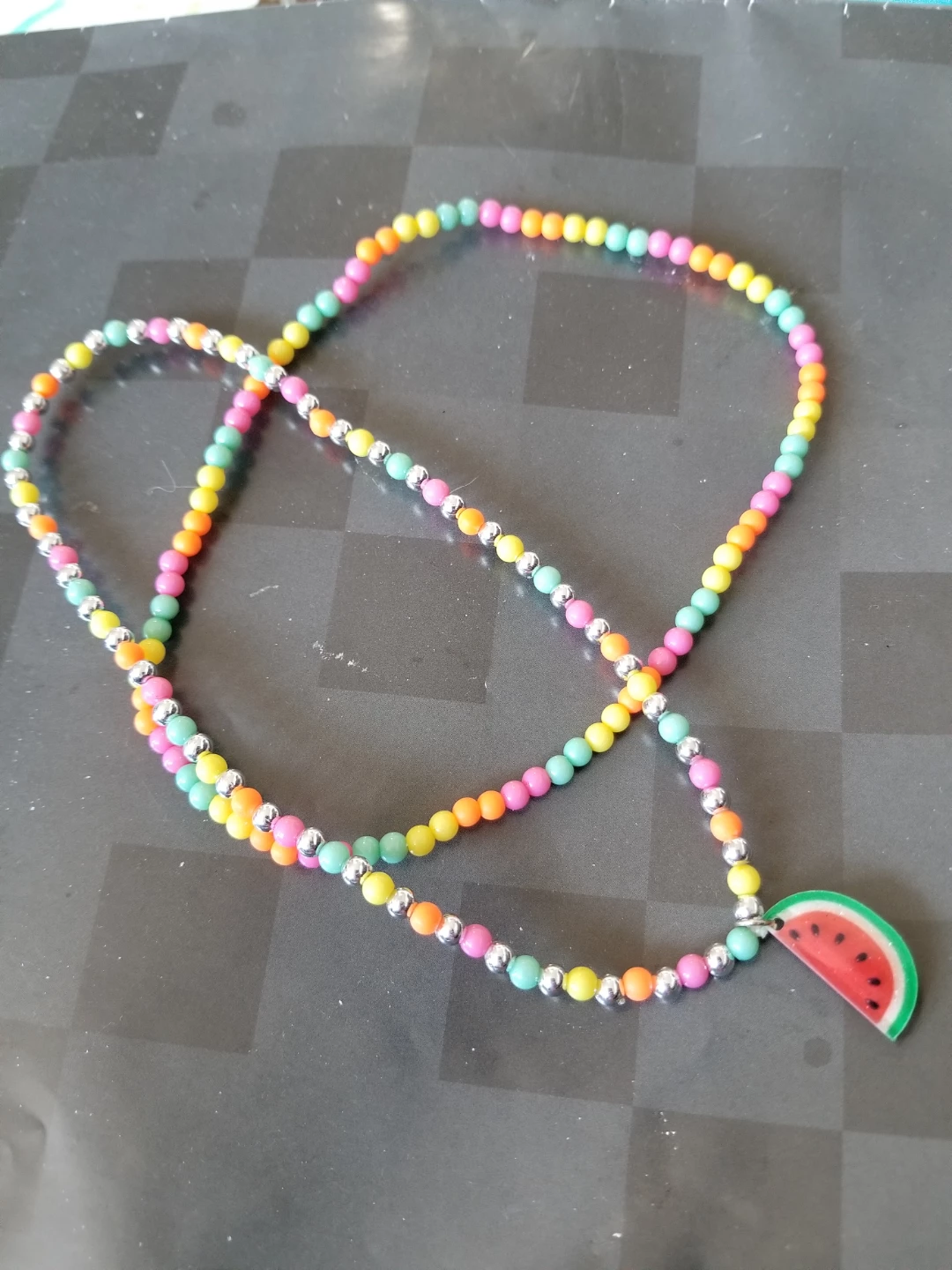 1 / 11 / 1Buy & SellBeaded Necklace with Watermelon CharmBeaded Necklace with Watermelon Charm$3This is a cute beaded necklace with a watermelon charm! The beads are a variety of bright colours. Brand new ConditionNewWHERE TO MEETLibraryView MapSELLERverifiedKatherineValleyway24018 reviews0 chats·0 favorites·7 viewsSEND CHAT TO SELLERHi Katherine! I’m interested in your listing.Hi Katherine! I’m interested in your listing.Get the Karrot app to chatSign In to chat