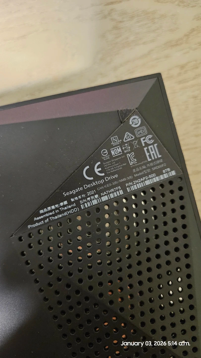 Selling a Seagate Desktop Drive with 8TB of storage. It comes with all the necessary cables to get you set up! It was assembled in Thailand in 2021
