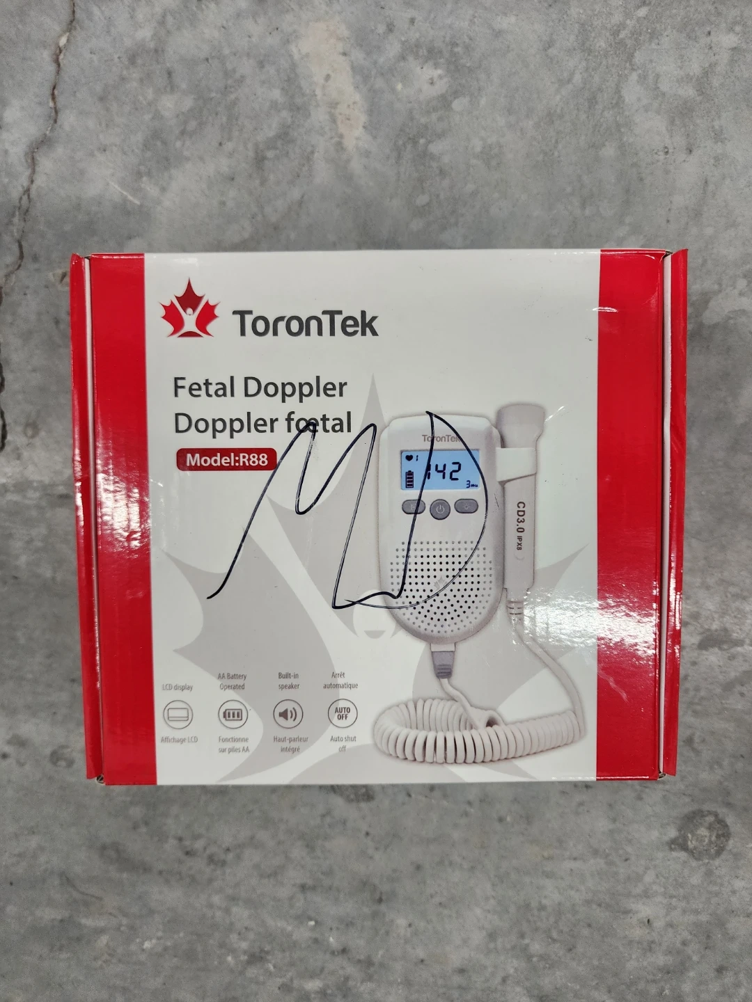 Selling a ToronTek Fetal Doppler, model R88. It features an LCD display, operates on AA batteries, and has a built-in speaker. It also has an auto shut-off feature for convenience