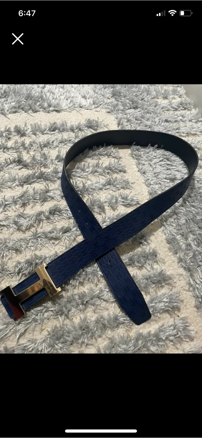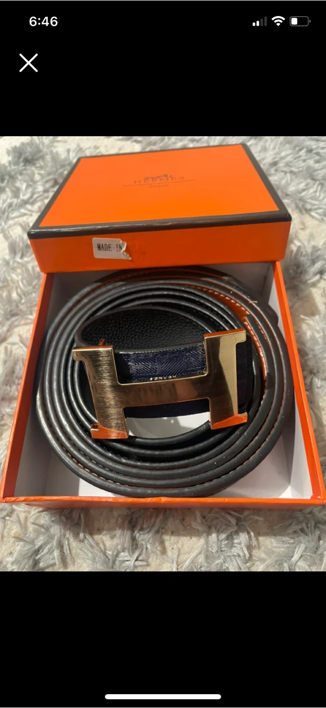 Add a touch of luxury to your wardrobe with this Hermes Belt featuring a stylish H buckle! This belt is in excelent new condition, ready to elevate your look. This belt features a black leather strap on one side and a blue denim strap on the other side. The belt strap can be removed from the buckle, to use on another Hermes buckle.