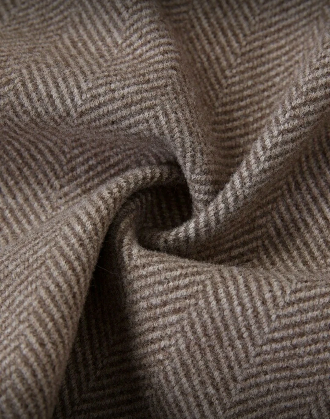 Here's a stylish coat with a detachable fur collar! It has a belted waist.