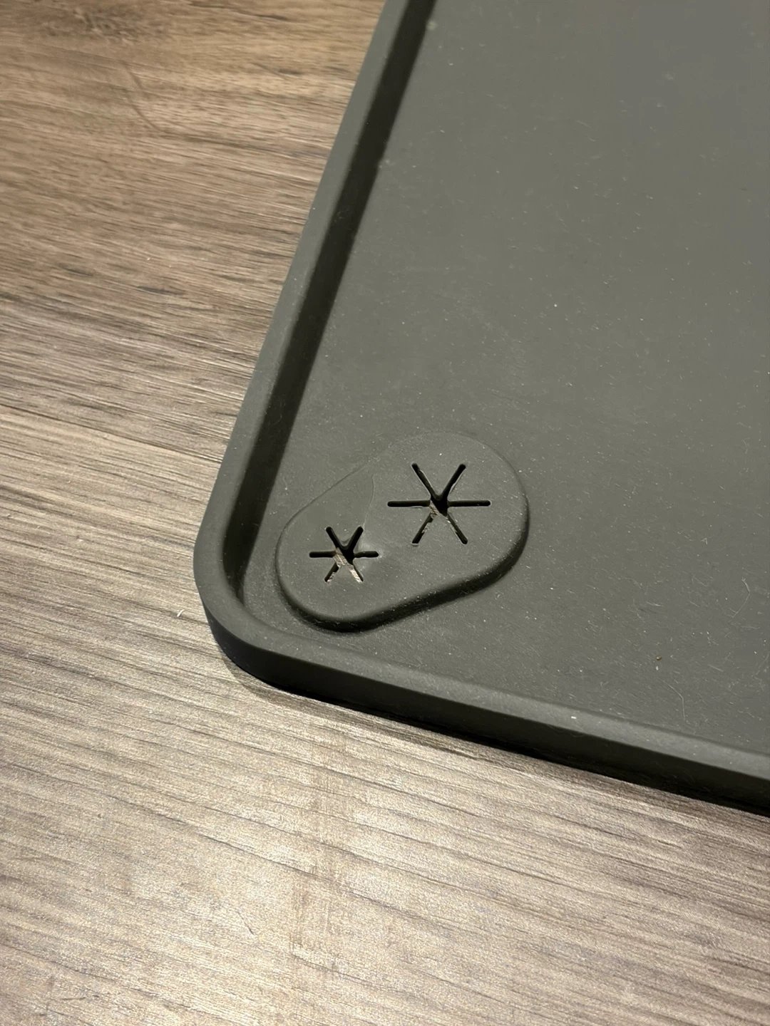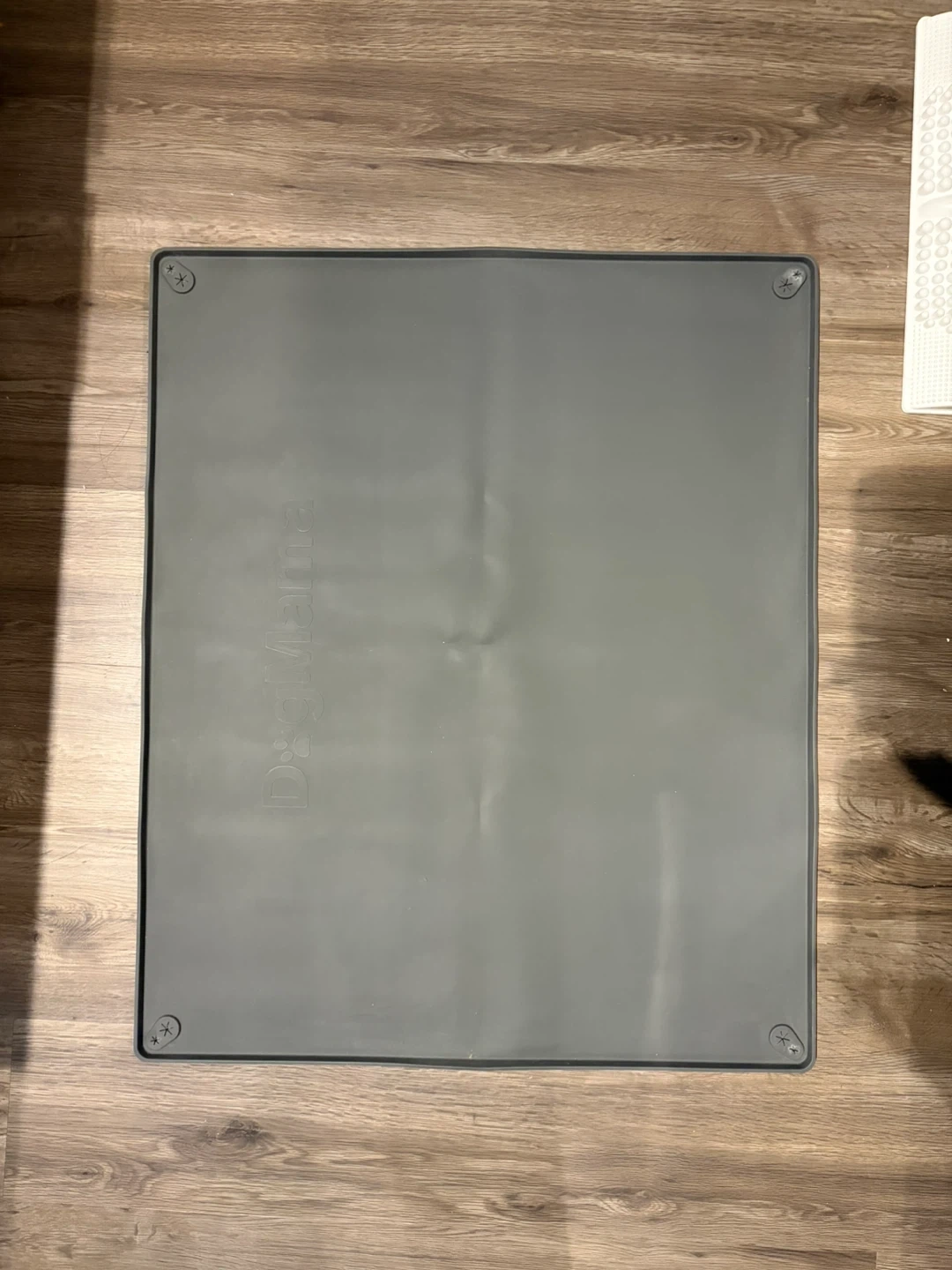 Selling a Dog Mama pet potty training pee pad holder mat in great condition! It's 100% made of silicone, so it’s easy to clean, waterproof, and odourless. There is pee pad grip hole in each corner to secure the pee pad in place.