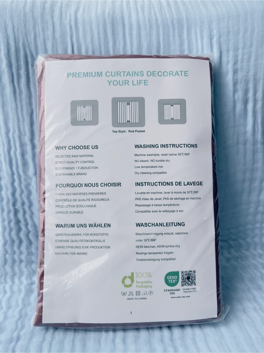 I have a new set of CUCRAF premium curtains still in the original packaging! They are a lovely colour. The size is 52x54 inches (132x137cm). They are machine washable at or below 30°C/86F, and tumble dry is not recommended