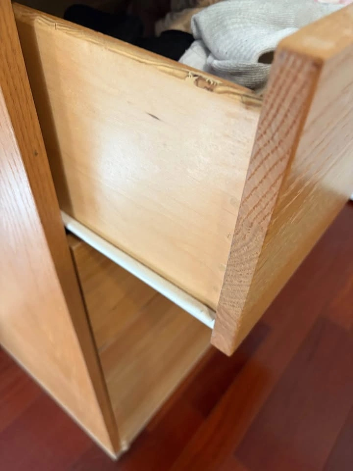 Beautiful, heavy-duty solid oak dresser featuring four spacious drawers. This piece is built to last with high-quality wood grain. Design: Clean, modern lines with recessed black pulls. Storage: Four full-width drawers that slide smoothly. Condition: Excellent structural condition with a warm natural finish. Versatile: Perfect for a bedroom, nursery, or even as an entryway console. Measures 30” wide 18” deep 35” high. Pick up in Brighton on Monday Jan 5 1 pm