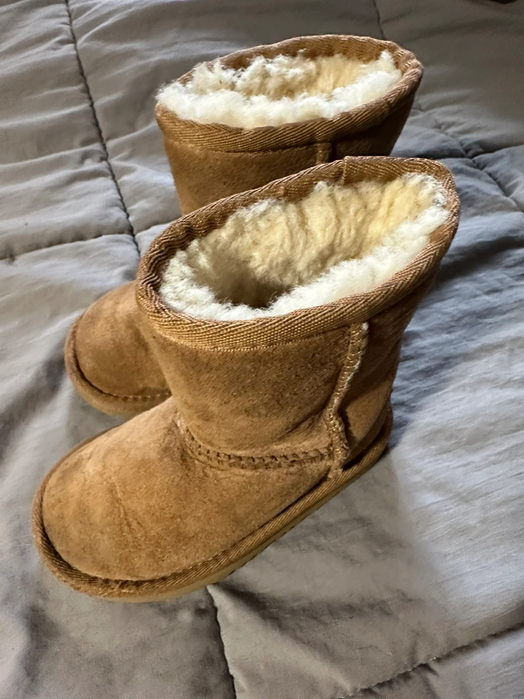 Selling a pair of UGG Kids Classic Short Boots. They are a size 7 in US sizing. These boots are in good condition and ready for a new owner! Pick up East 106th st and 1st ave!