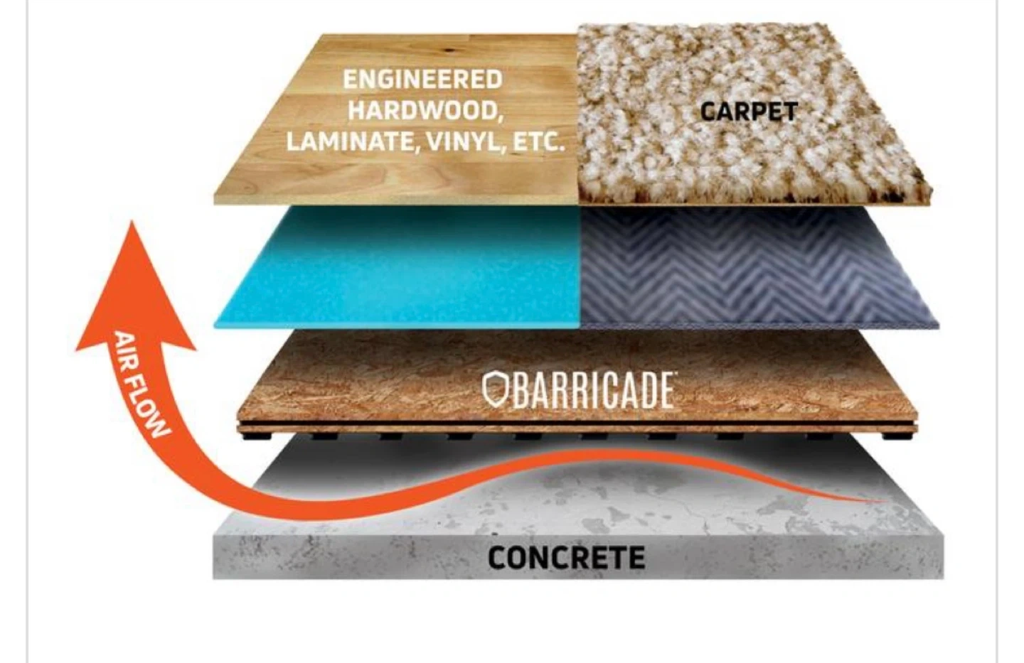 Selling Barricade approx 25 subfloor tiles, each measuring 23.25" x 23.25". These tiles are designed to provide an airflow barrier under various types of flooring like engineered hardwood, laminate, vinyl, and carpet. They're great for creating a more comfortable and durable subfloor! Price is for each panel.
