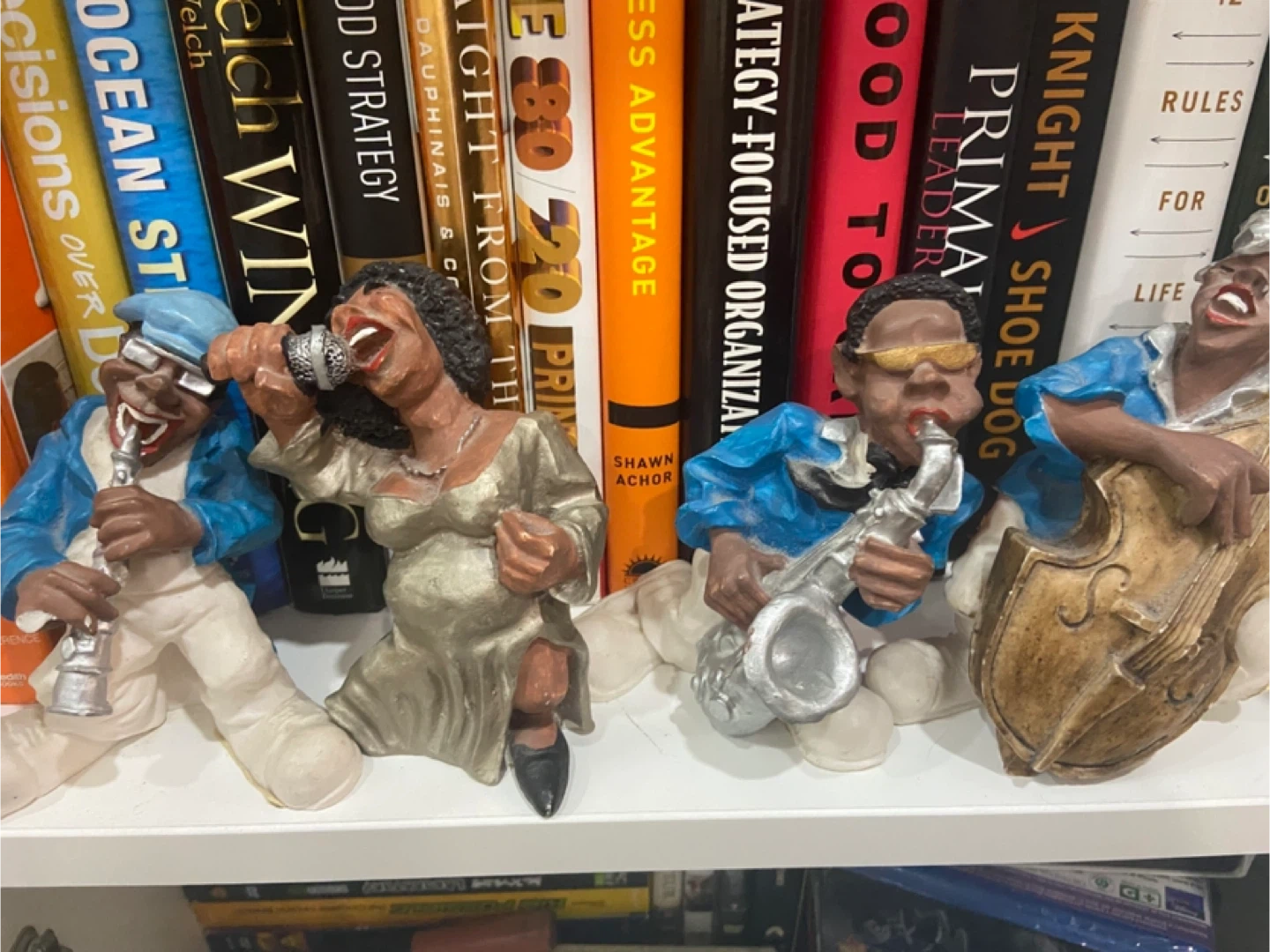 Selling a set of jazz band figurines. These are great for adding a bit of musical flair to any room! They've been sitting on a shelf, so they're looking for a new home.