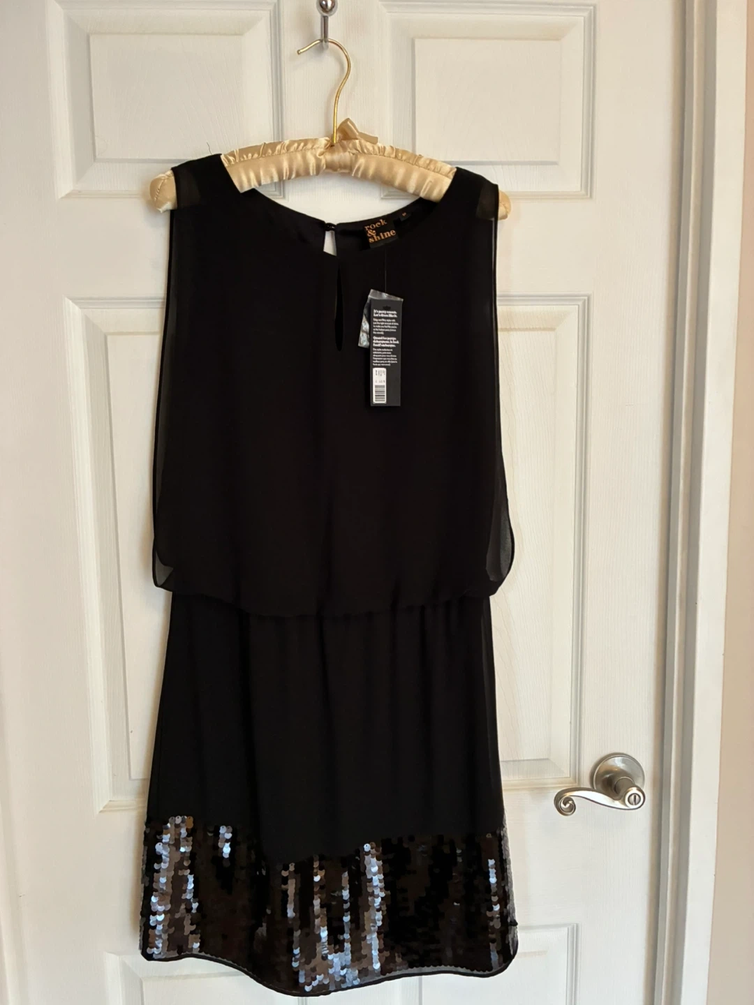 NEW with tags. Black sleeveless party dress in size S. The dress has a stylish design with a sequin detail at the bottom, perfect for any party or special occasion!