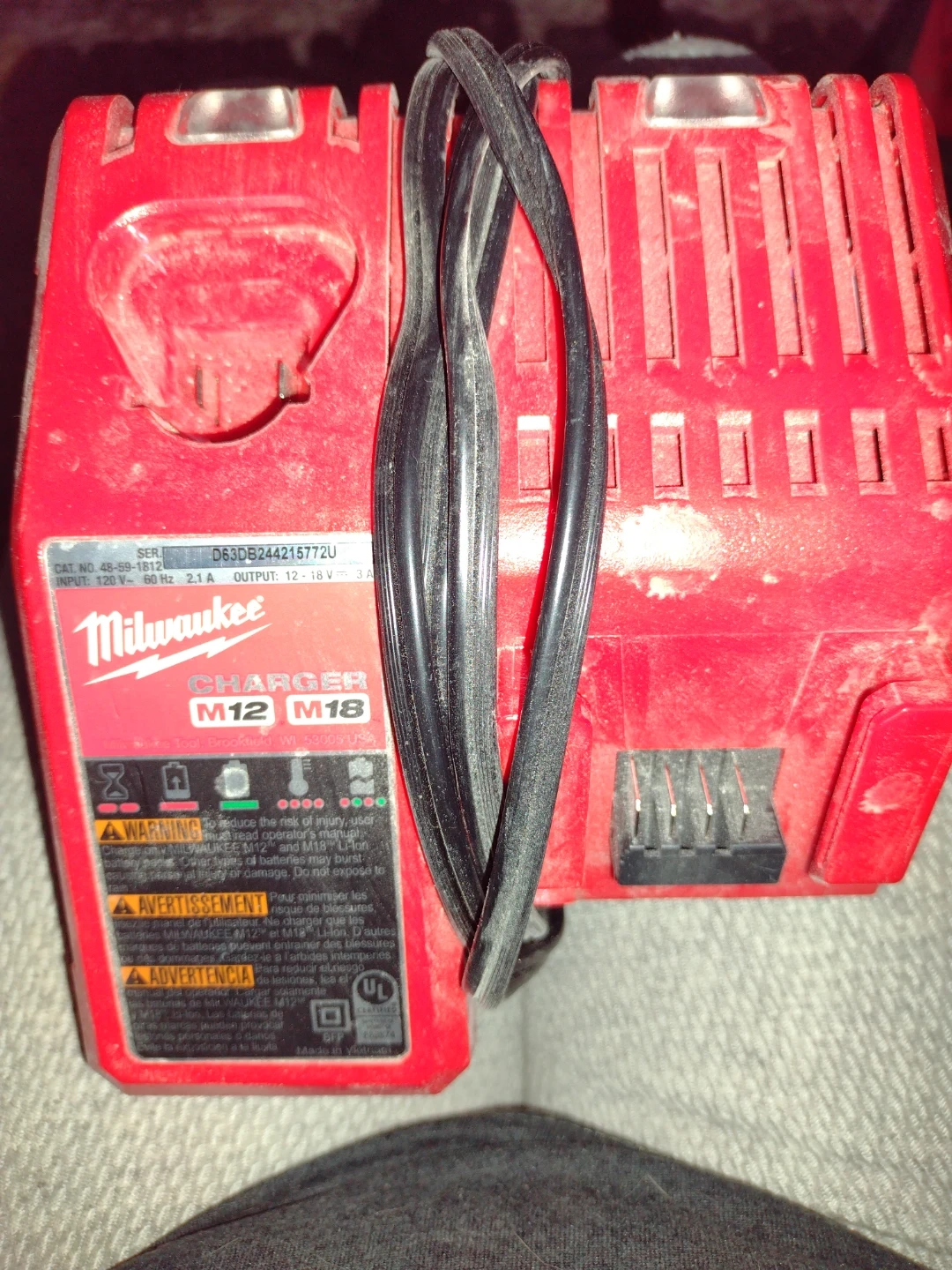Selling a Milwaukee M12 and M18 battery charger. It's in used condition, but fully functional. Perfect for keeping your batteries charged and ready to go!