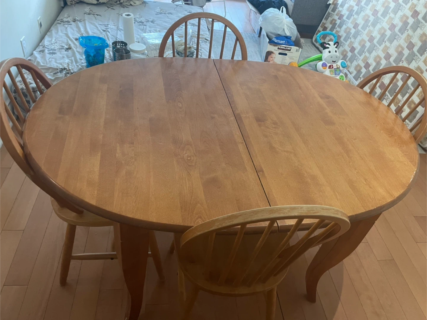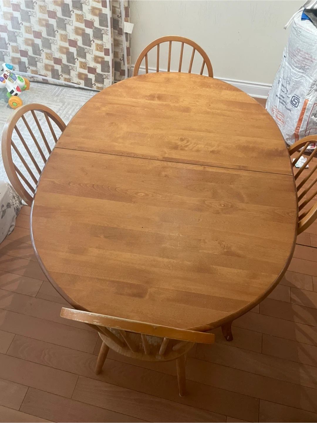 Selling a lovely wooden dining table complete with four matching chairs! It's in great condition and ready to be the heart of your dining space. Perfect for family dinners or cozy get-togethers