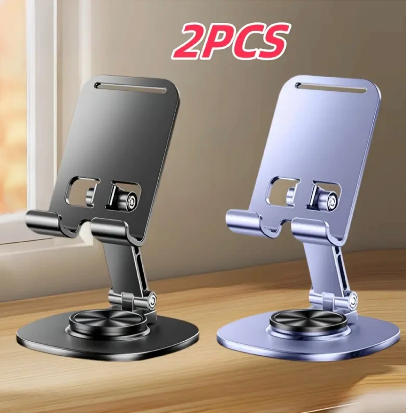 2pcs Folding Phone Stand, All-Metal Phone & Tablet Stand, 360-Degree Rotating Base with, Features Soothing Mechanical Sound, Perfect for Home, Office And Travel Use, Live Streaming, Selfie Sticks, Video Recording, Ideal Gift Choice, Office Desk Accessory, Travel Companion, Modern Accessory, Sleek Design, Durable Construction, Sturdy Base, Adjustable Stand, Rotating Holder, Home Accessory, Tablet Holder, Students & Professionals, Travelers & Office Workers