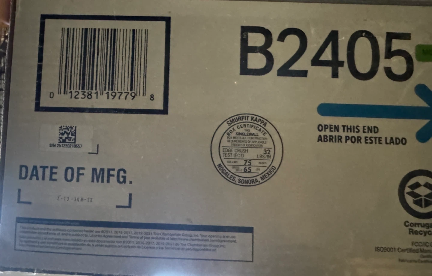 It fits garage doors up to 7 ft. high and has a 1/2 MED HP motor. Date of MFG: 2022 June 13