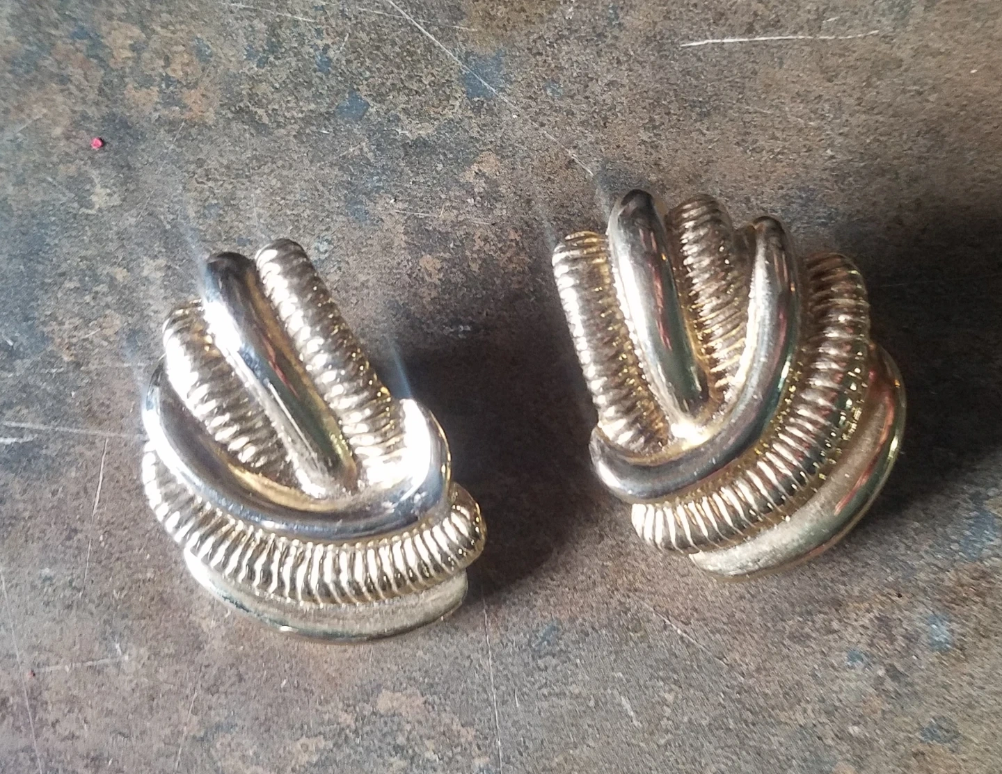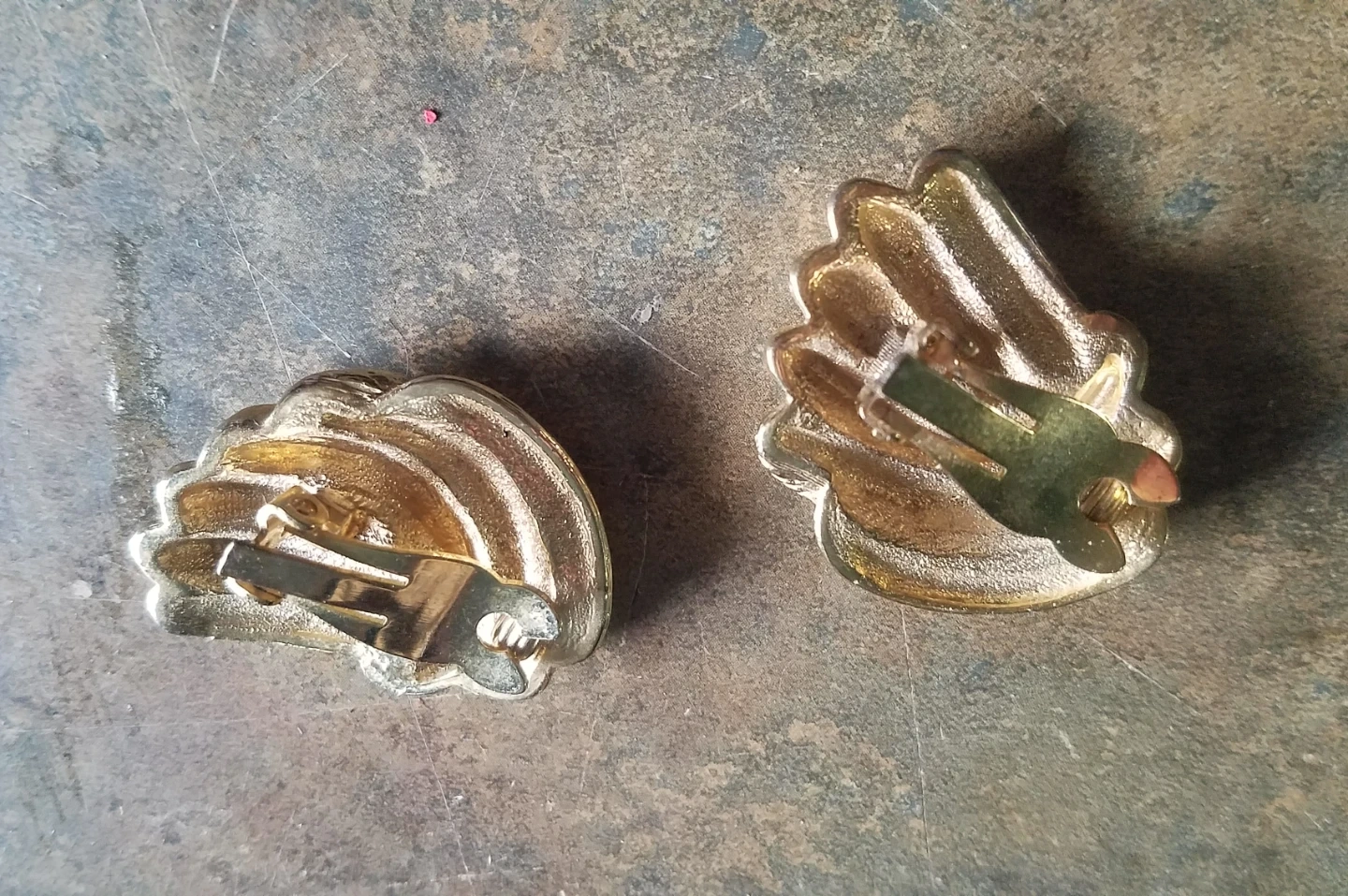 Vintage Antique Mid Century Gold Costume Clip On Earrings