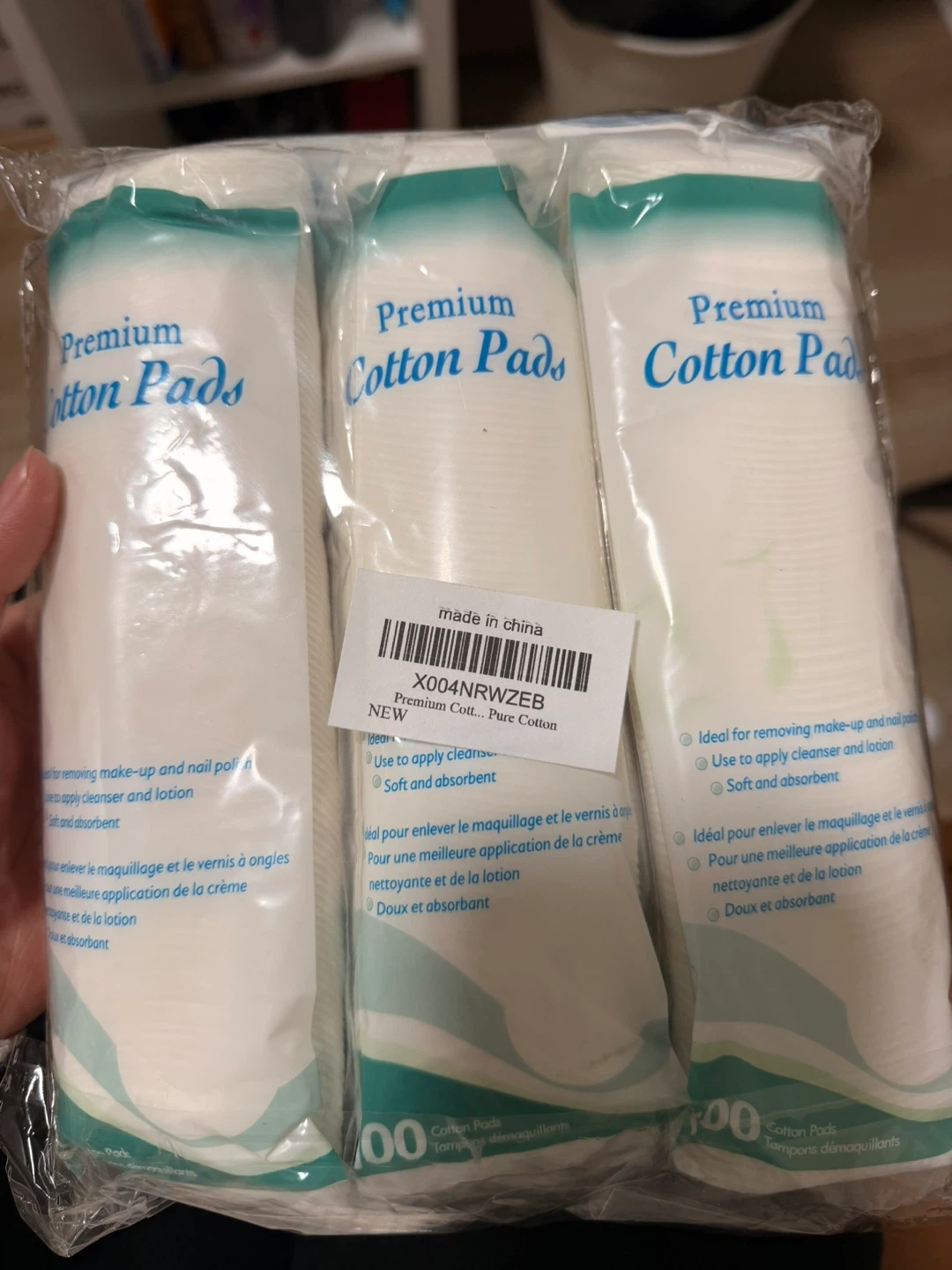 I'm selling a pack of Premium Cotton Pads. They're ideal for removing make-up and nail polish, and for applying cleanser and lotion. They are soft and absorbent. Each pack contains 100 cotton pads and are brand new!
