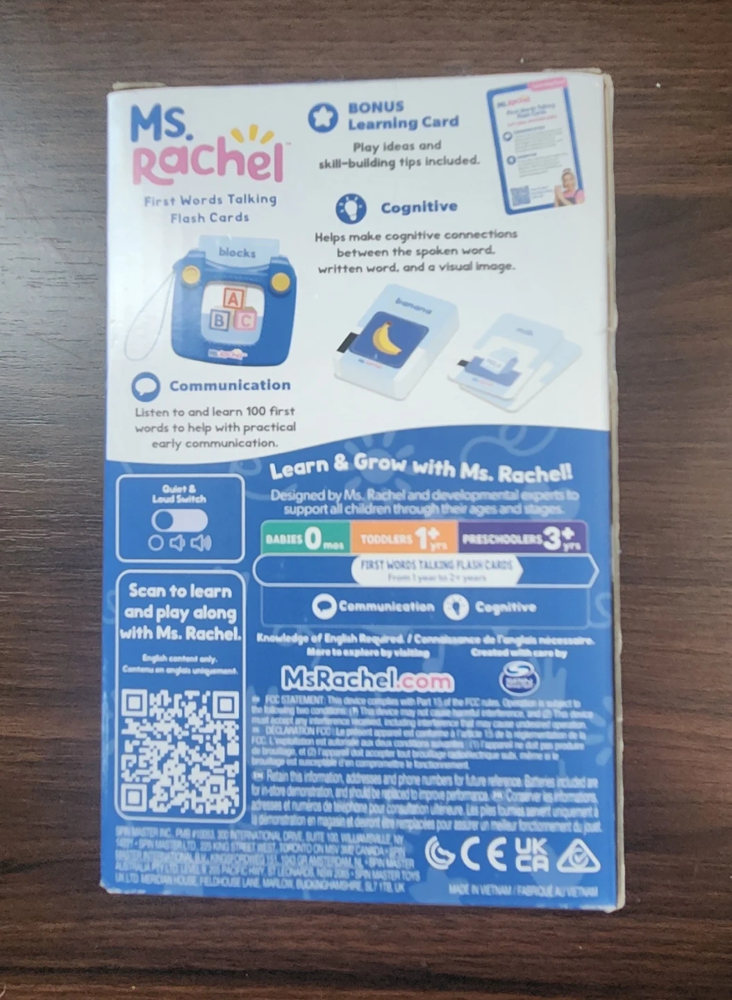 I'm selling Ms. Rachel First Words Talking Flash Cards! These flash cards are designed for babies 0+ months, toddlers 1+, and preschoolers 3+! Includes 1 card reader, 50 flash cards and 1 learning card. It helps make cognitive connections between the spoken word, written word, and a visual image! Box is unopened