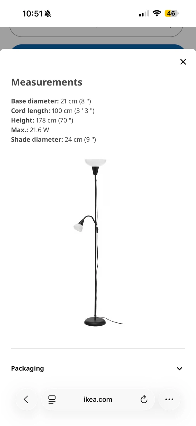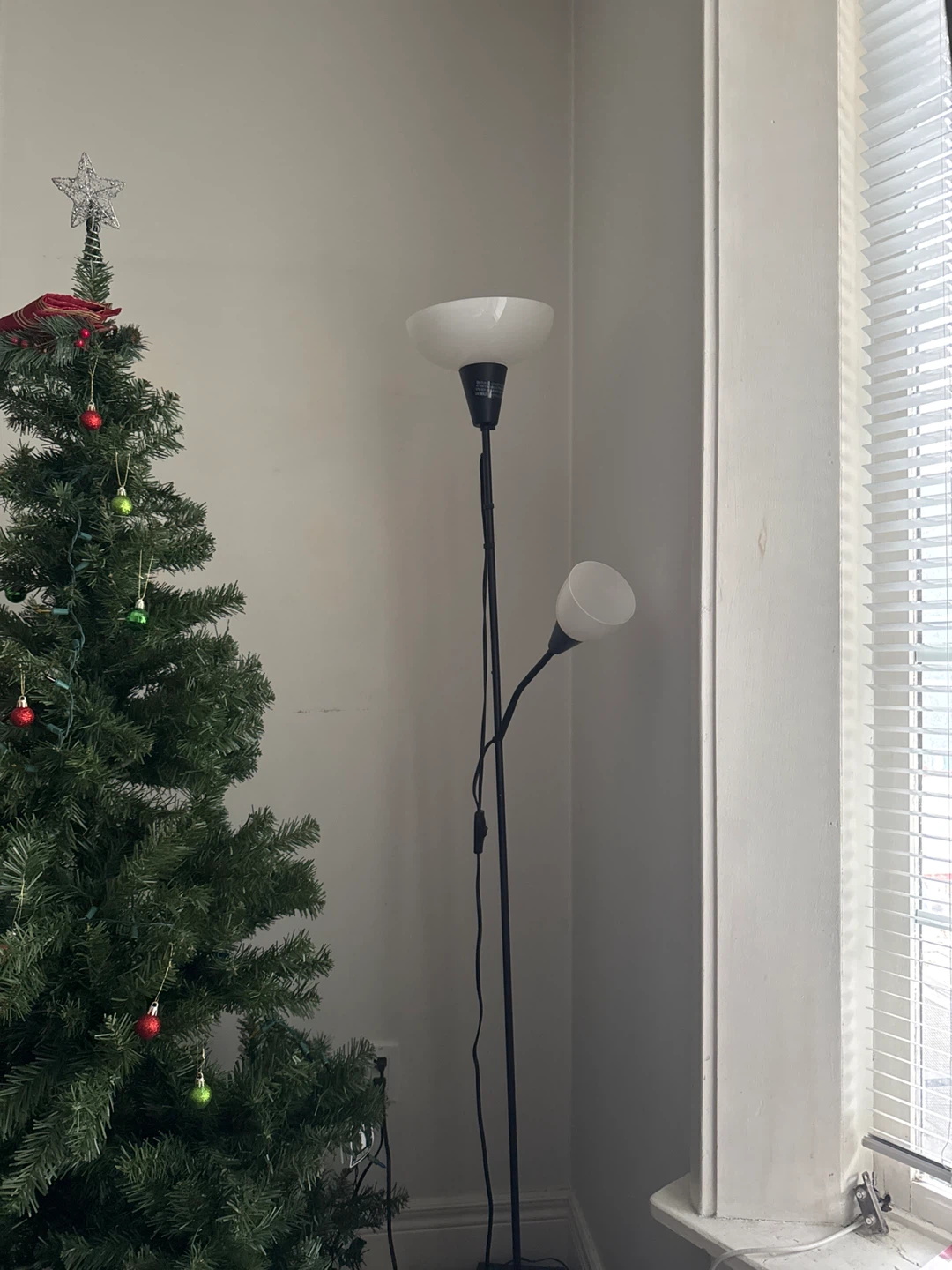 Selling this IKEA TÅGARP floor lamp. It comes with a current bulb installed and an extra bulb for the uplighter, but there is no bulb for the downlighter.