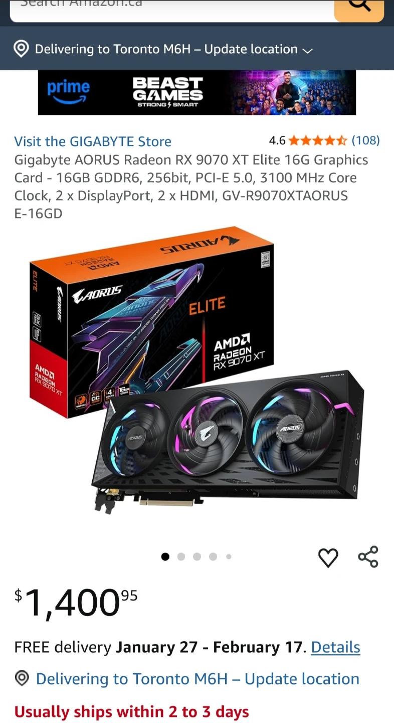 Selling a Gigabyte AORUS Radeon RX 9070 XT Elite 16G Graphics Card. PRIMIUM gpu card.