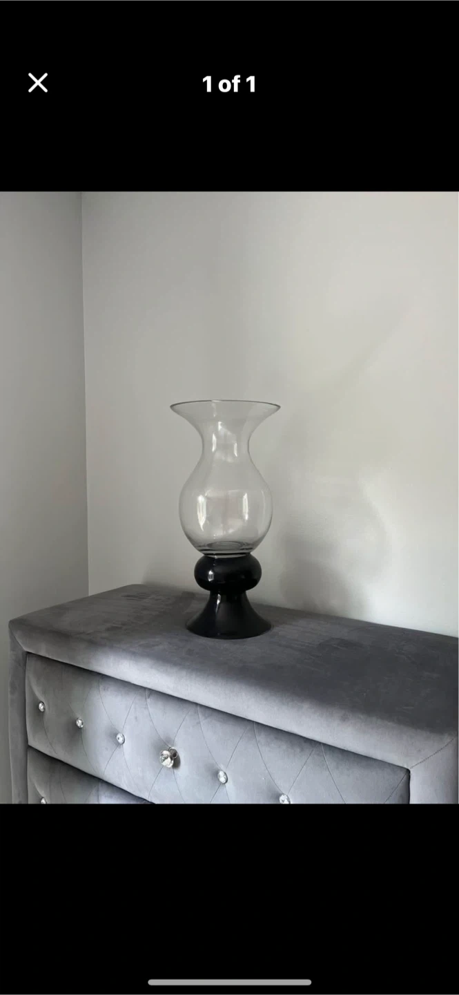 Selling a lovely glass hurricane candle holder! Display something inside or use as a standalone piece. (Small chip on base)