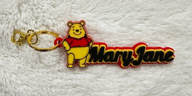 Custom made name Winnie the Pooh keychain. Made to order. Choose from 3 different styles of keychain rings (see all the pictures). Contact me if you have other character or font in your mind that you want to use. Local pick up/drop off is available in Whitby, ON. Please send us message for any questions and we will reply within same day or 24 hours. Message us here or send us an email to umami3dprints@gmail.com