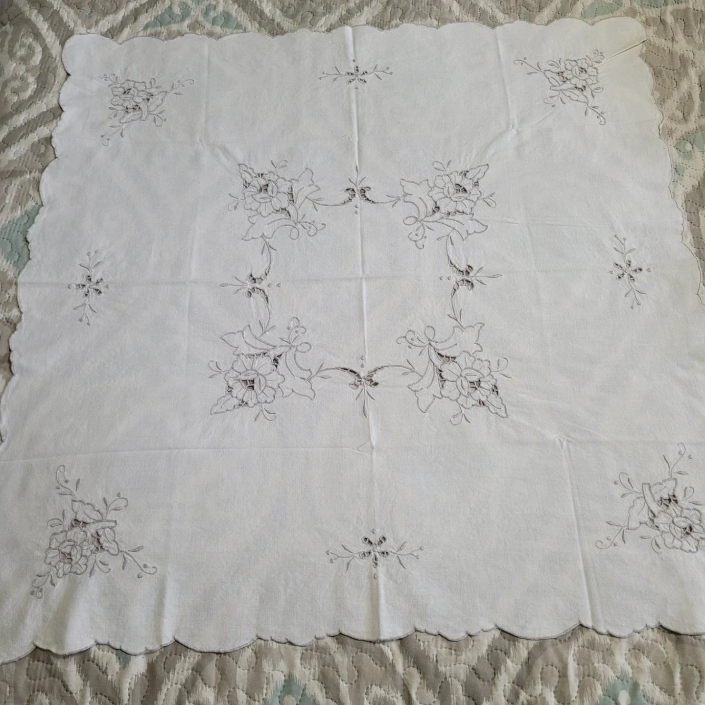 Beautiful 30" x 30" Handmade Table Linen with Embroidery Decor 1 Tiny imperfection please see all pictures