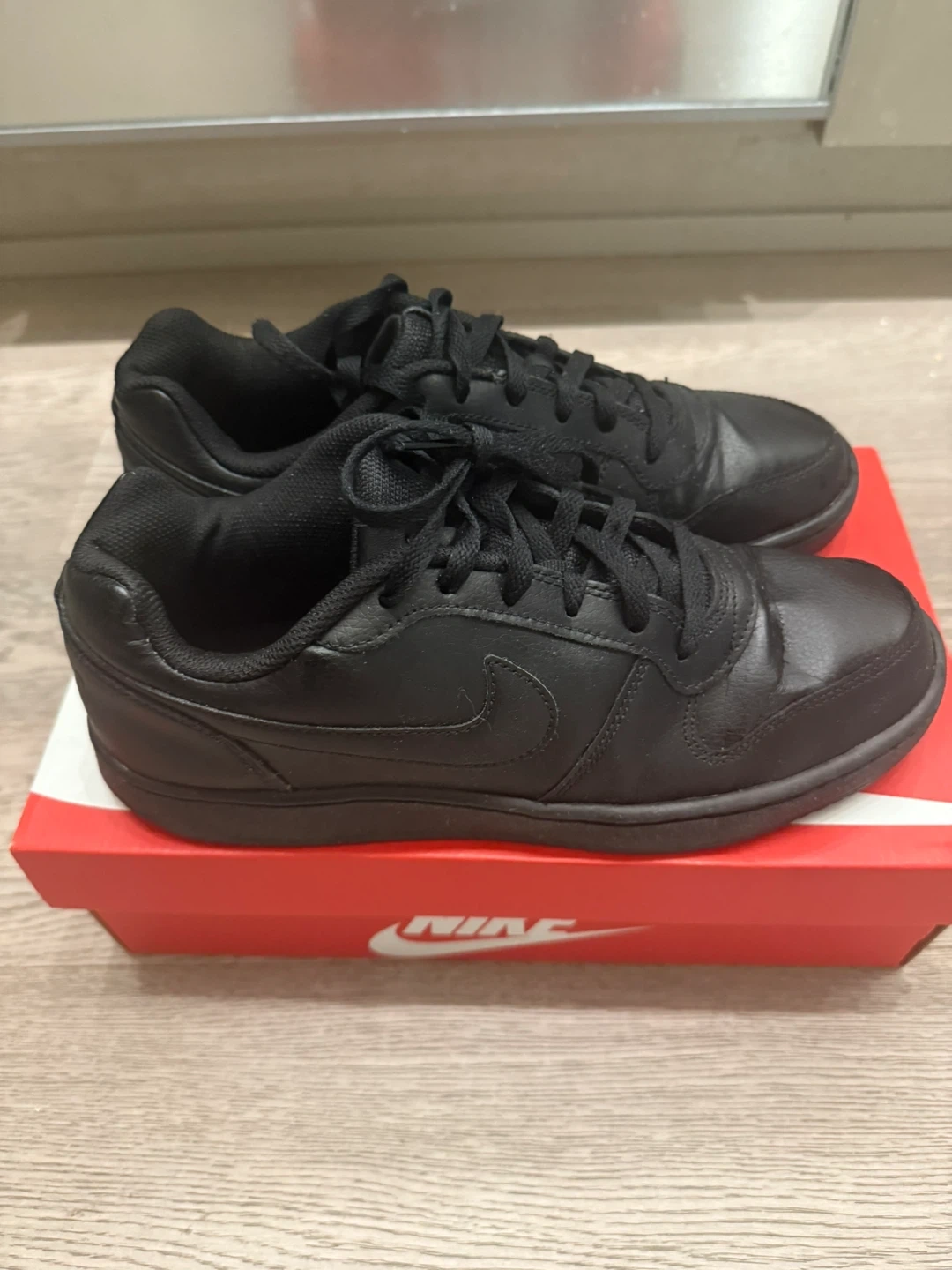 Selling a pair of black Nike Ebernon Low sneakers. They're clean and in good condition and come with the original box!