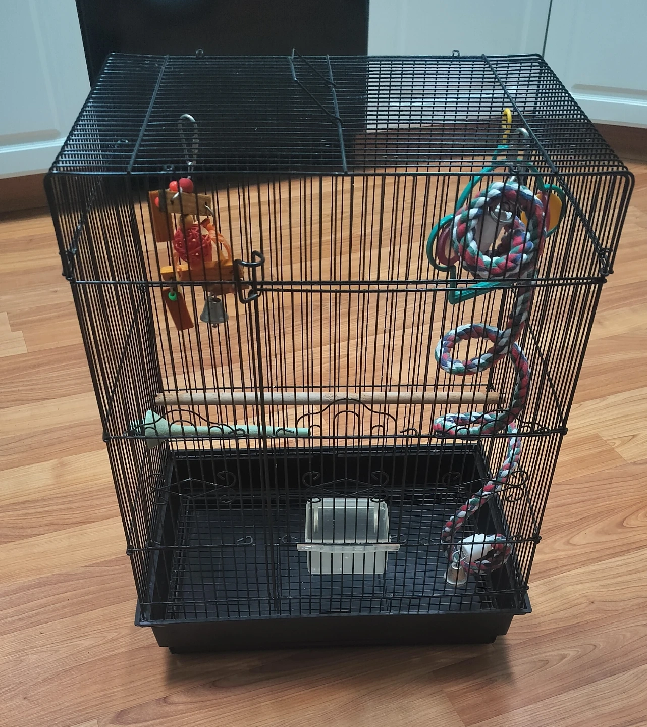 Selling a black bird cage that's in good condition! It comes with a variety of accessories to keep your feathered friend happy and entertained. Includes perches, toys, and a food/water dish. Perfect for small to medium-sized birds