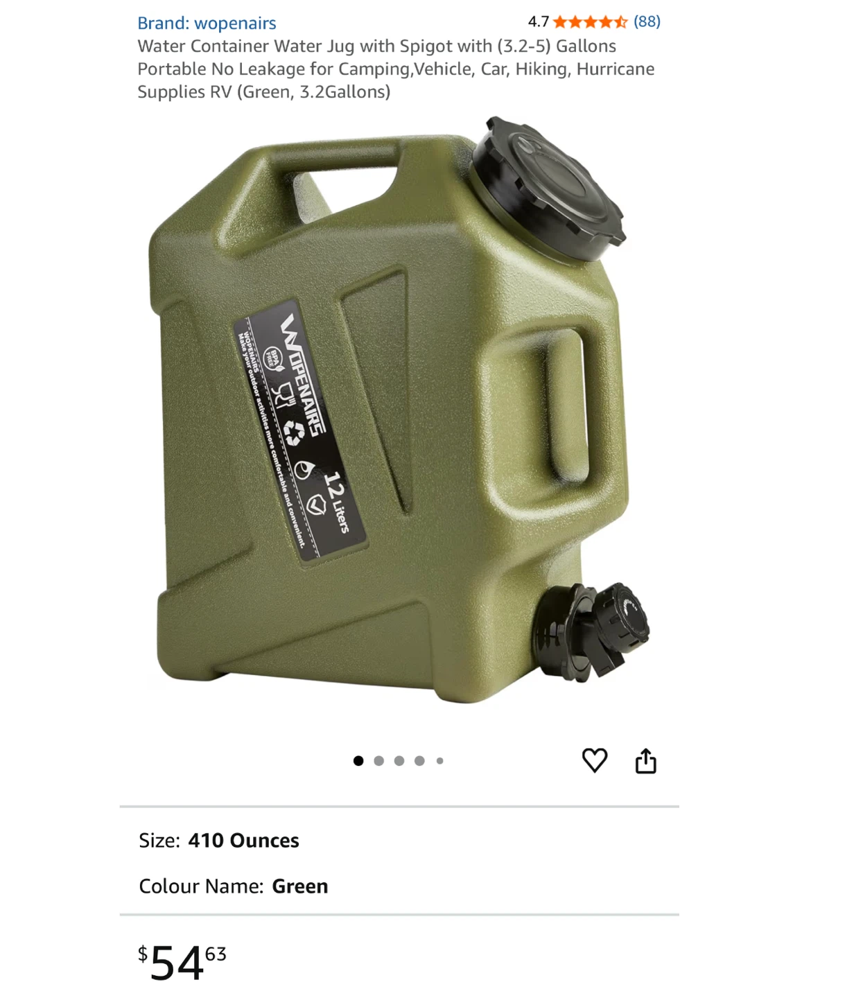 Selling a Wopenairs water container in green! It holds 12 liters and is perfect for camping, hiking, or any outdoor activities. It makes your outdoor activities more comfortable and convenient. Comes with a spigot for easy dispensing and includes a brush and hose!