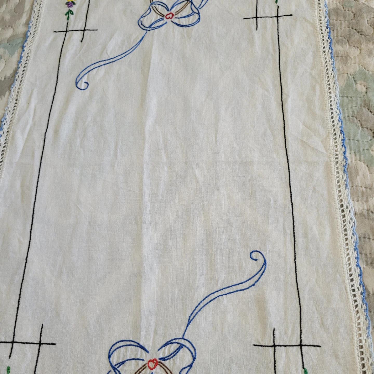 Beautiful Vintage 34" x 15" Cross Stich Linen Table Runner Decor