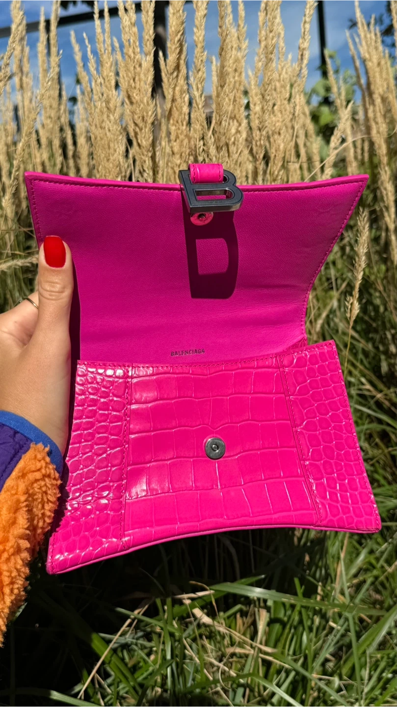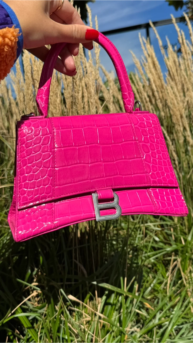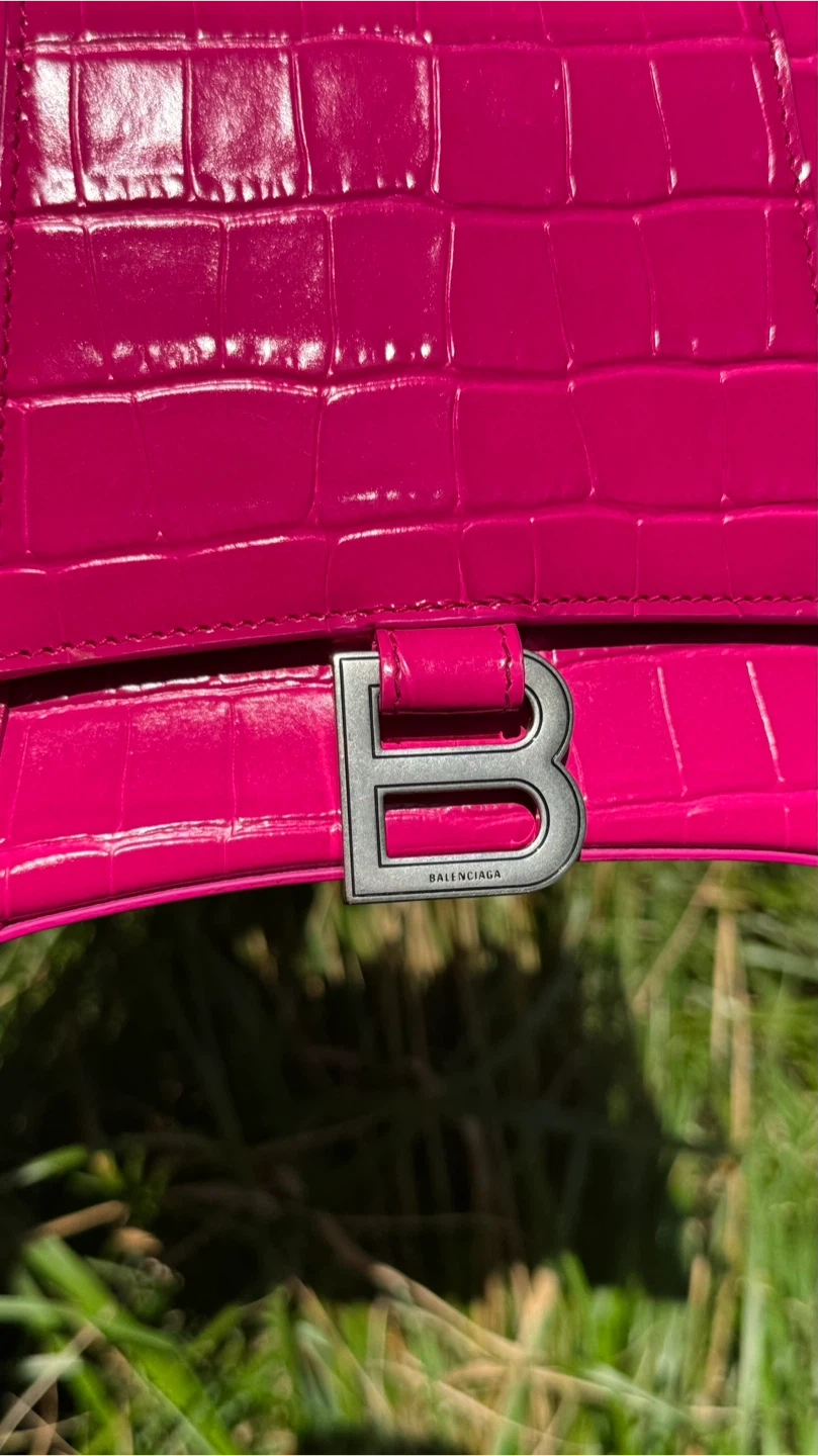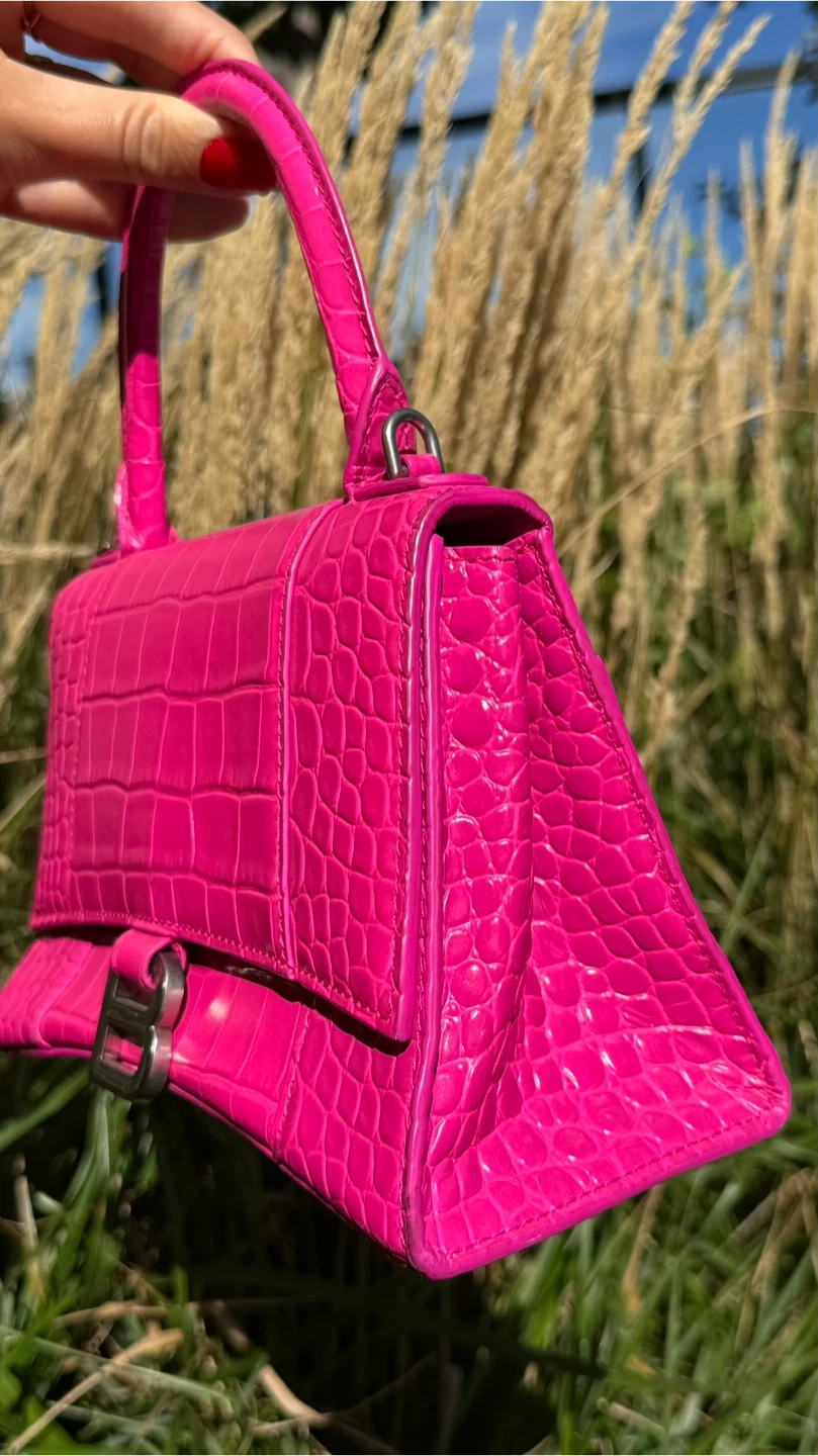 BALENCIAGA Hourglass Small Croc-Effect Leather Bag