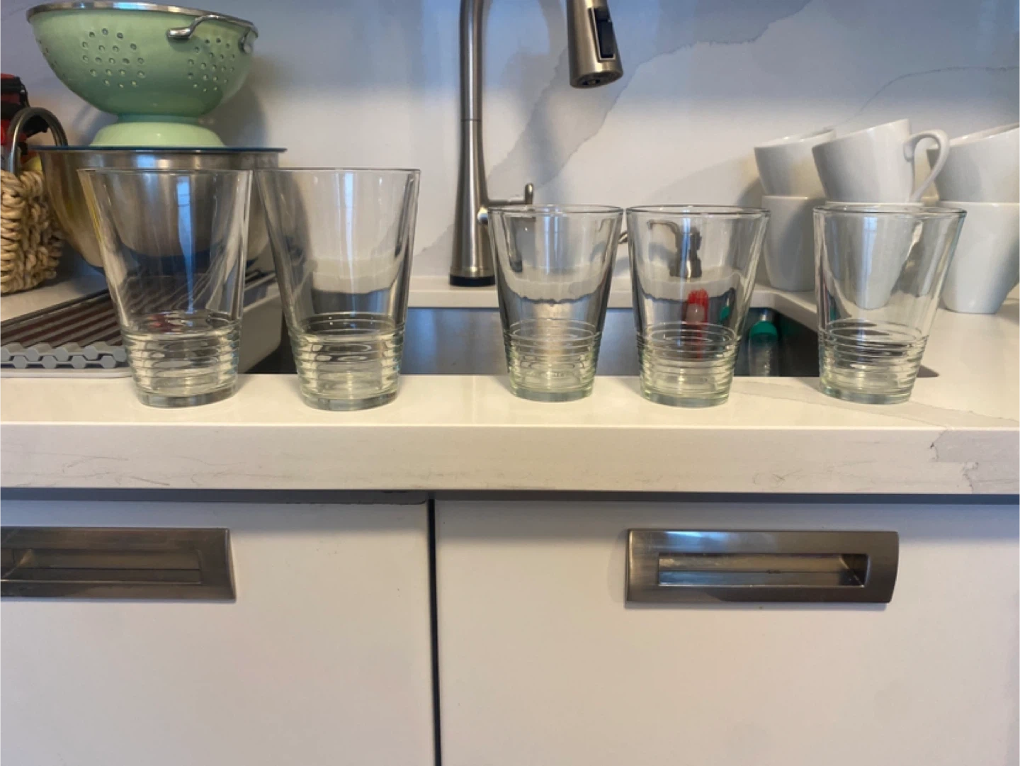 Selling a set of 5 drinking glasses. They are in great condition and ready for a new home. Perfect for everyday use or entertaining guests