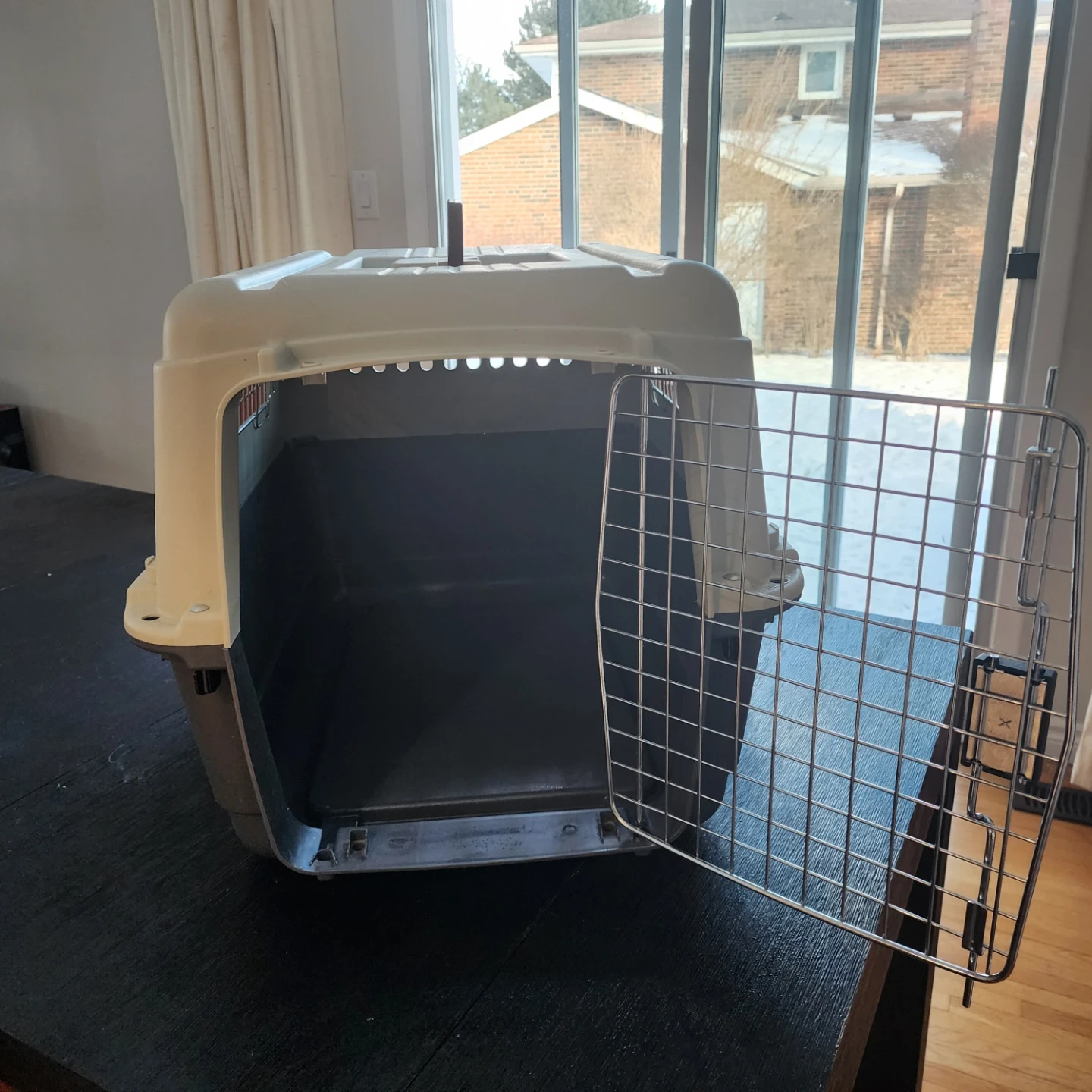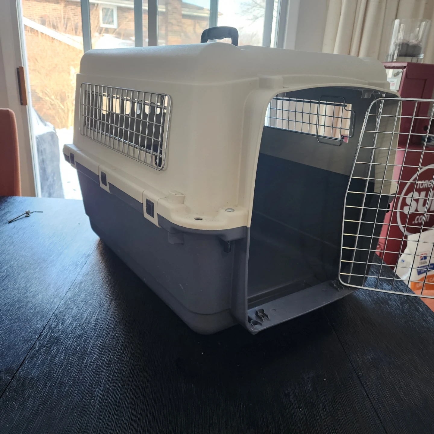 Essentials plastic pet carrier is great for transporting your pet while keeping them safe and comfortable. It is made of durable plastic, top and bottom lock together with wing nut fasteners for security. Metal door remains securely in place when closed with top and bottom spring-loaded latch. Properly ventilated with windows at side and back, and metal door. Plastic handles supports ease of carrying