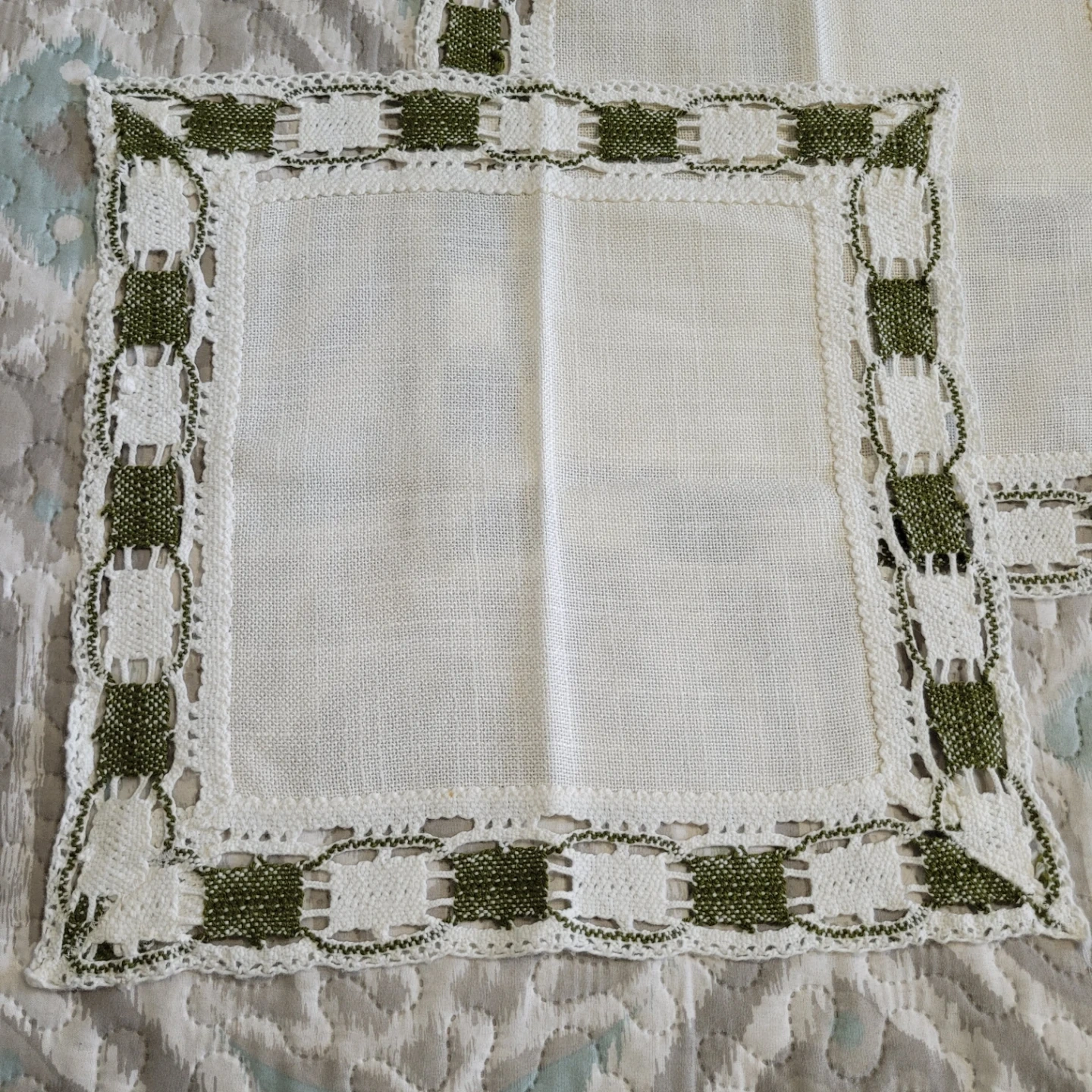 Set of 3 Beautiful Vintage Handmade 15" x 15" Doilies Table Decor etc. 1 has 1 tiny imperfection please see all pictures selling all 3 together
