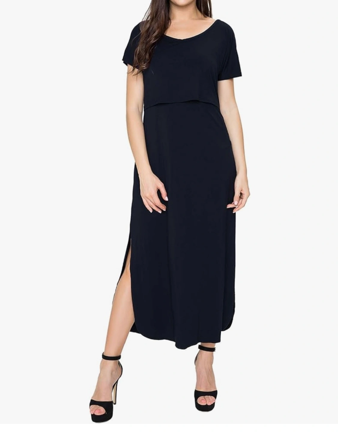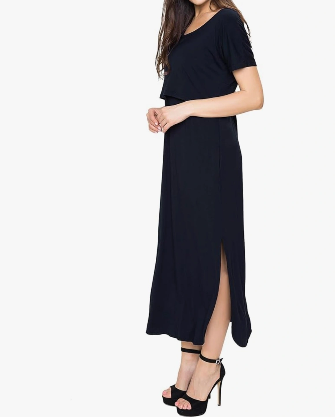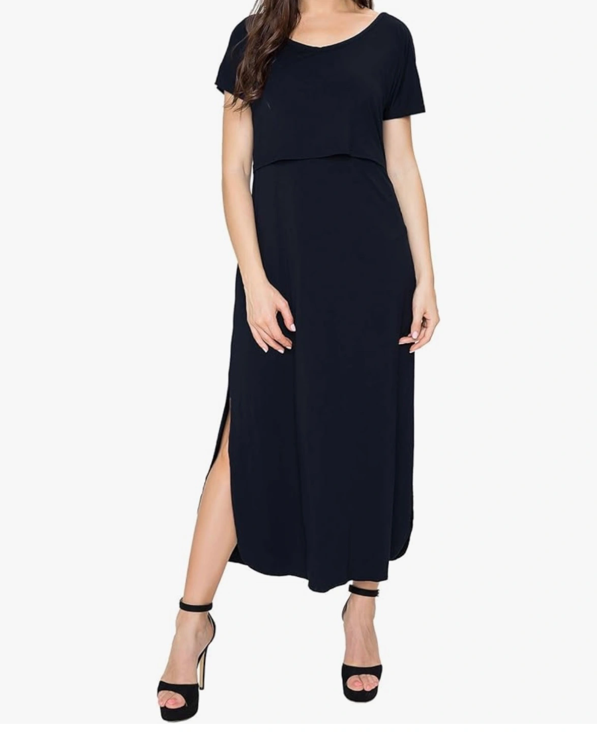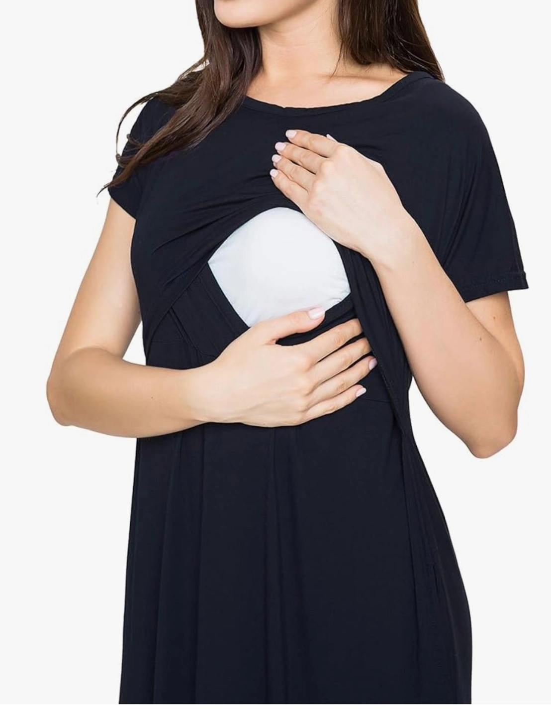 This is a brand new, with tags, SMALL SHOW nursing dress in size XL. It's a stylish and comfortable option for nursing mothers. Made from 93% rayon and 7% spandex, it offers a soft and stretchy fit. The dress features a convenient design for easy nursing access.