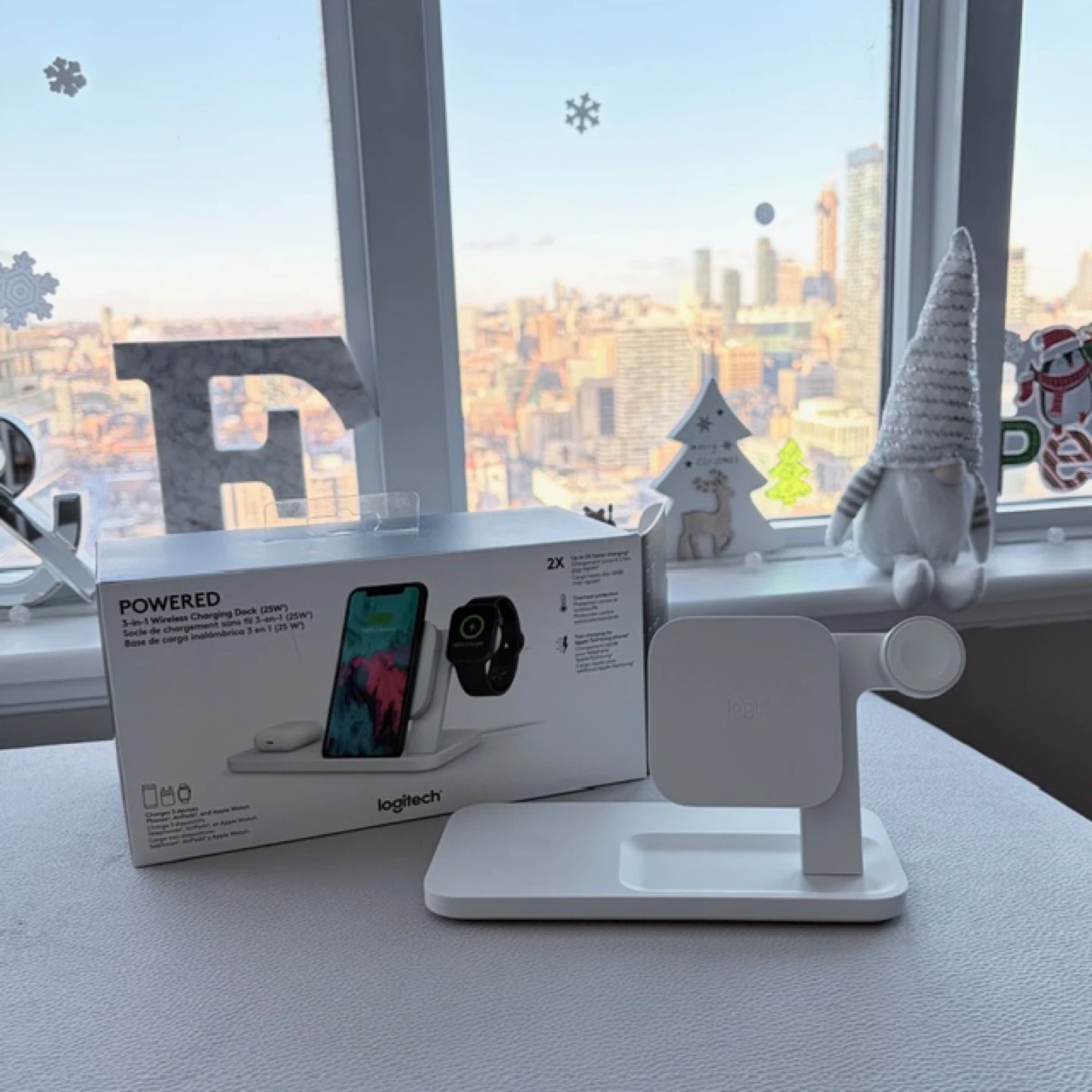Selling Logitech 3-in-1 Charging Dock in excellent condition. This premium charging station lets you charge three devices at once—no clutter, no extra cables. Charges iPhone, Apple Watch, and AirPods simultaneously Fast wireless charging Sleek, modern design Stable stand—great for desk or nightstand Officially designed for Apple devices Lightly used, works perfectly. No damage or issues.