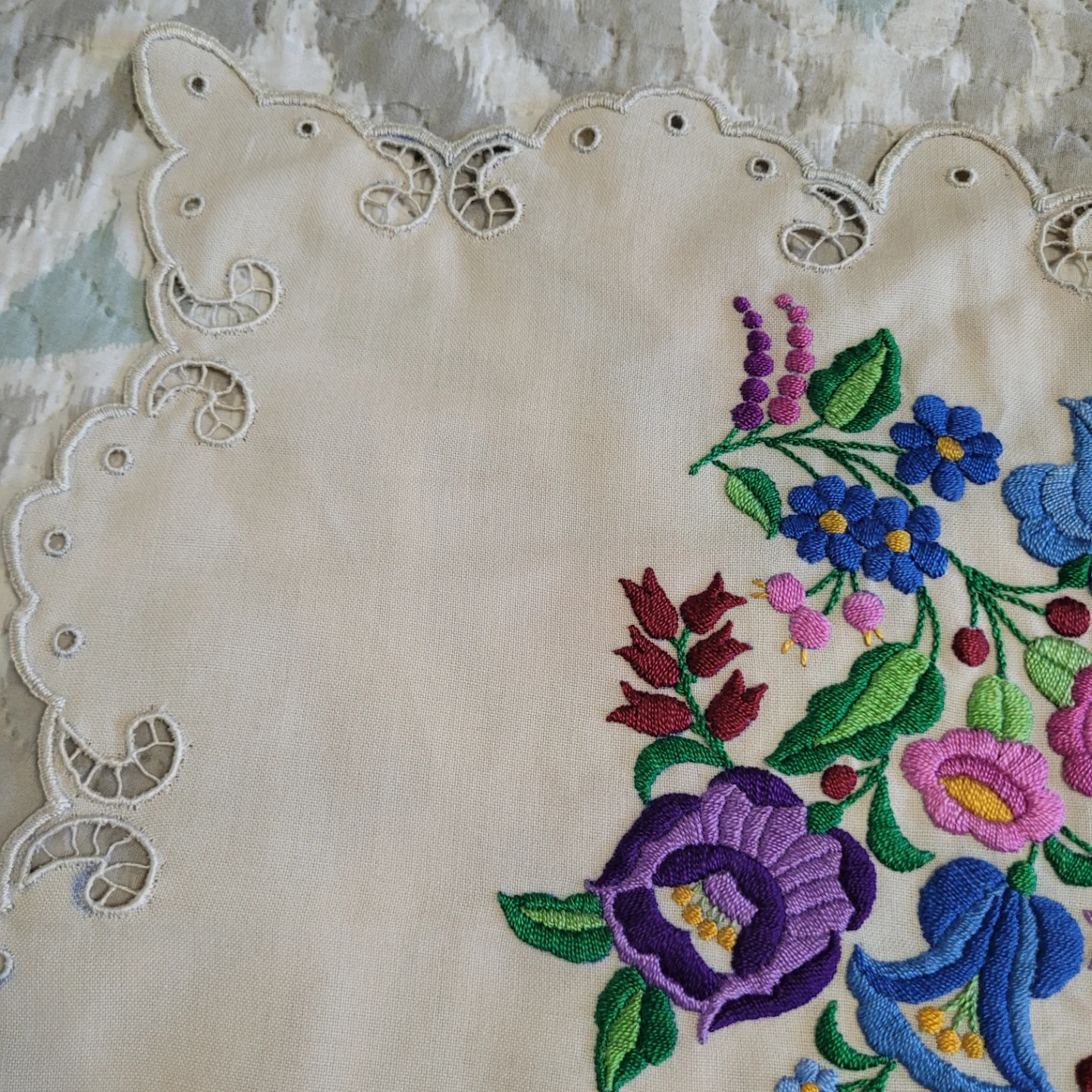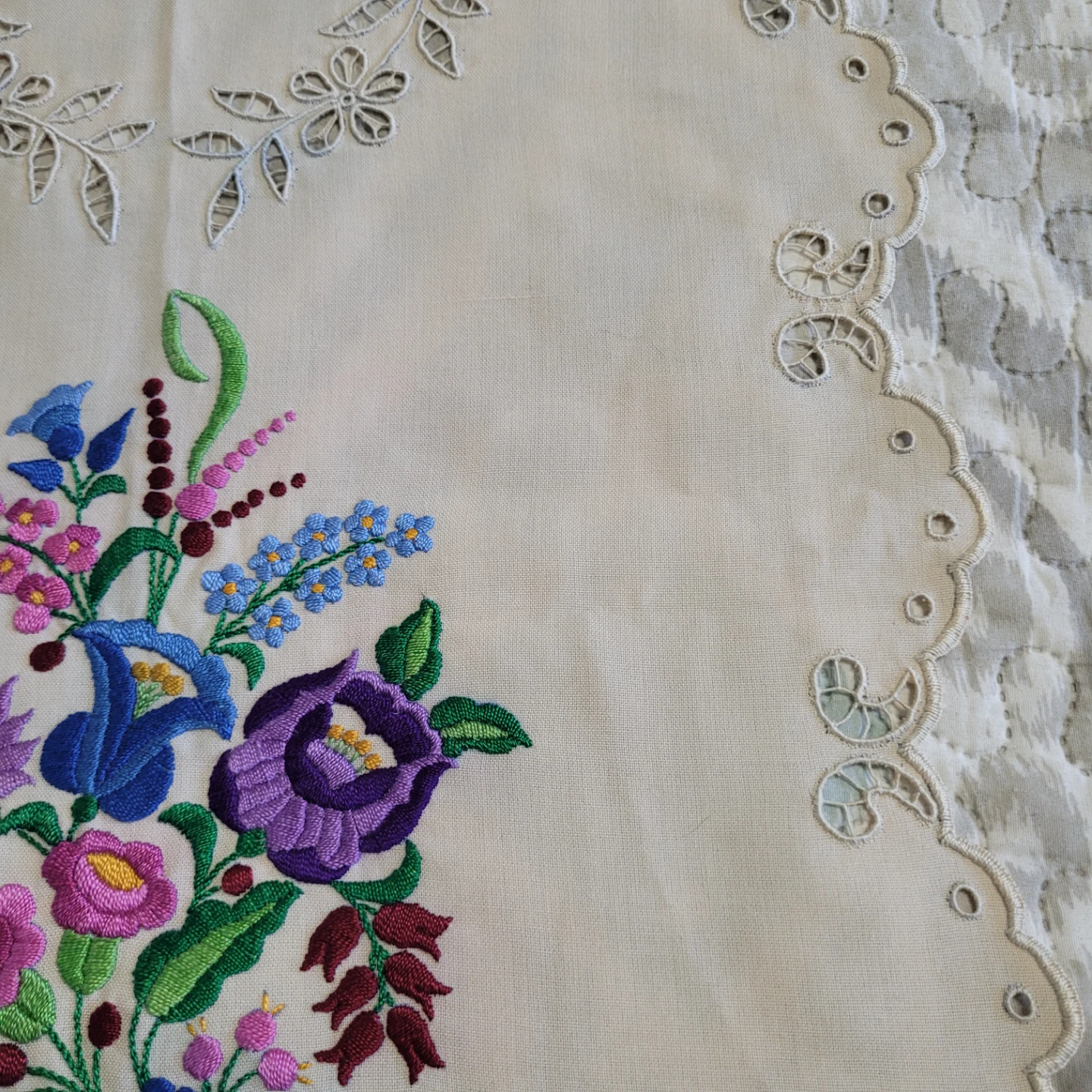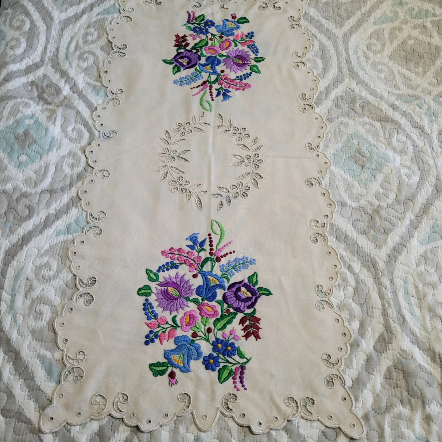 Beautiful Vintage 36" x 17" Cross Stich Needlepoint Table Runner Linen Decor