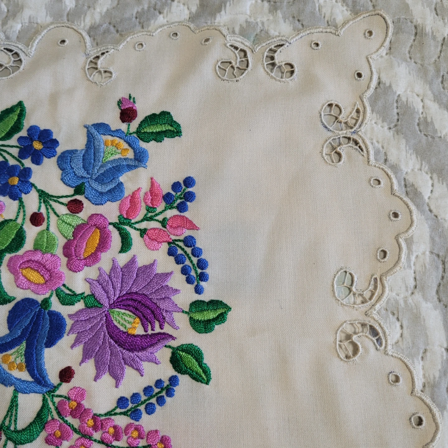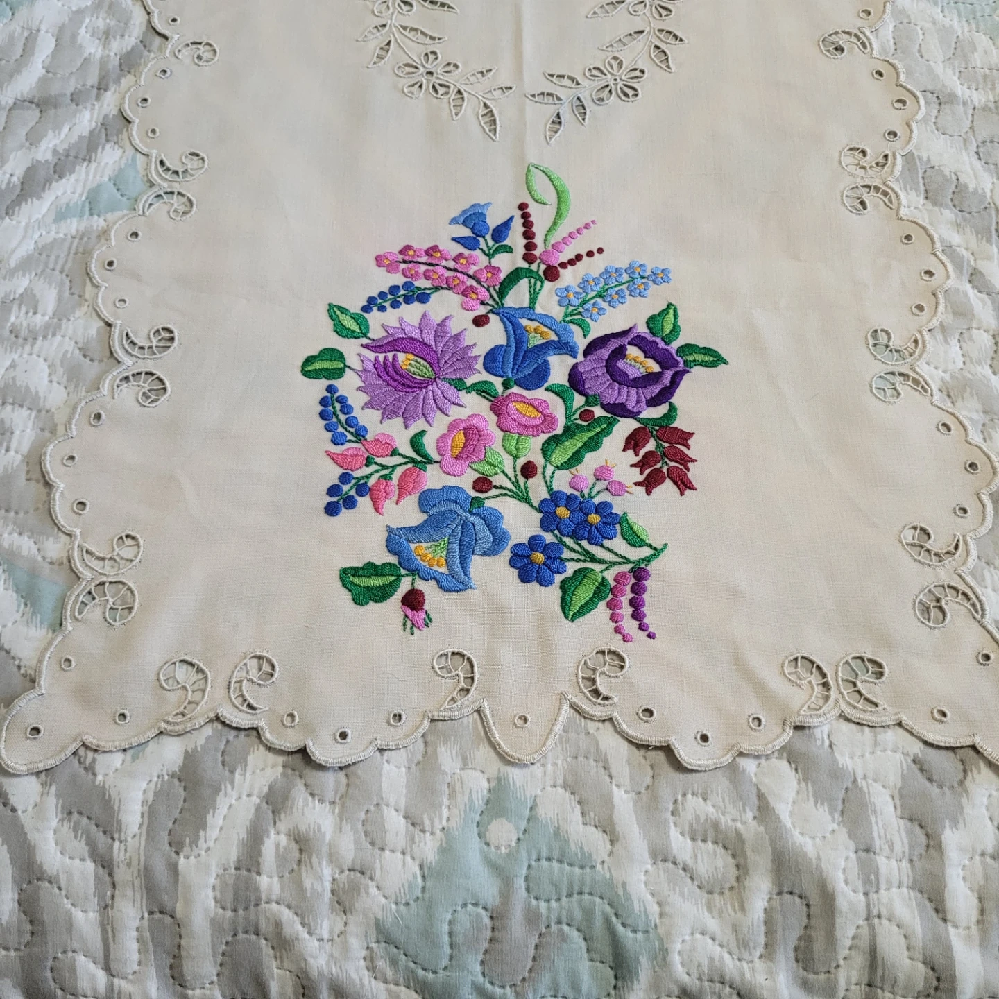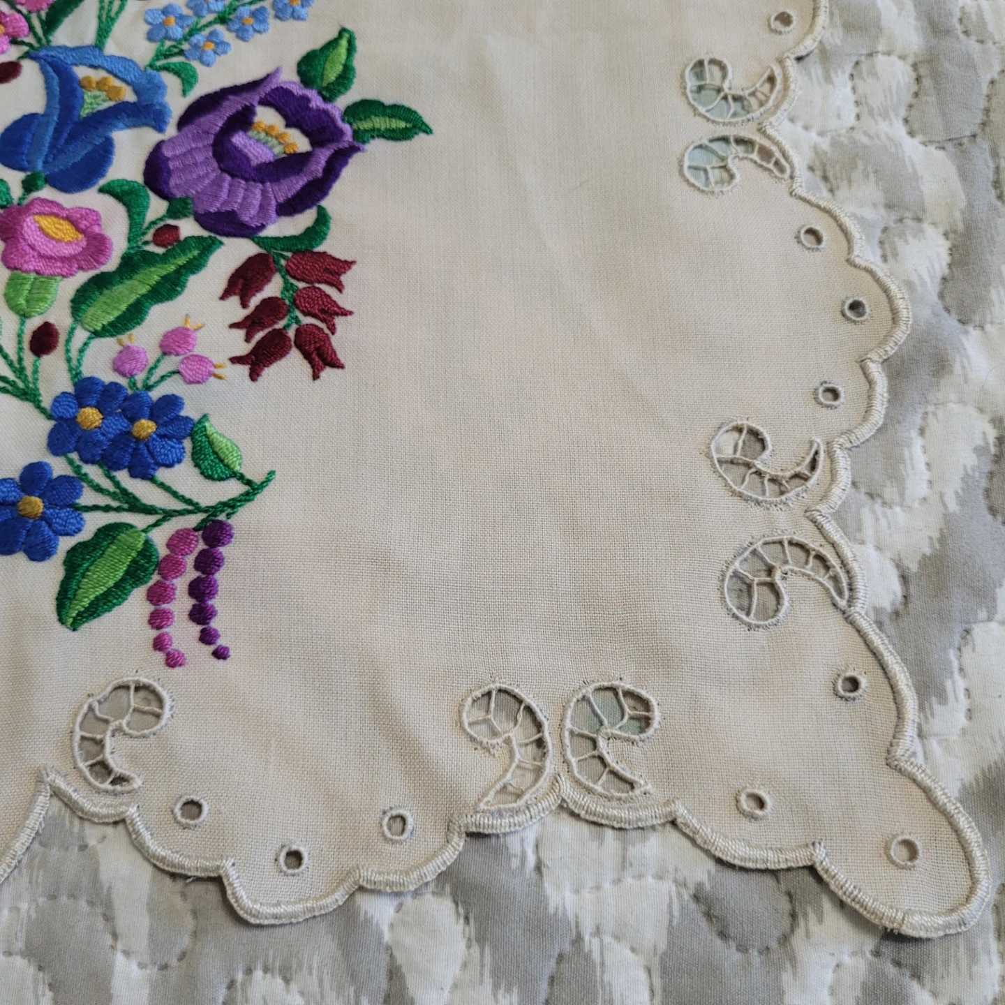 Beautiful Vintage 36" x 17" Cross Stich Needlepoint Table Runner Linen Decor