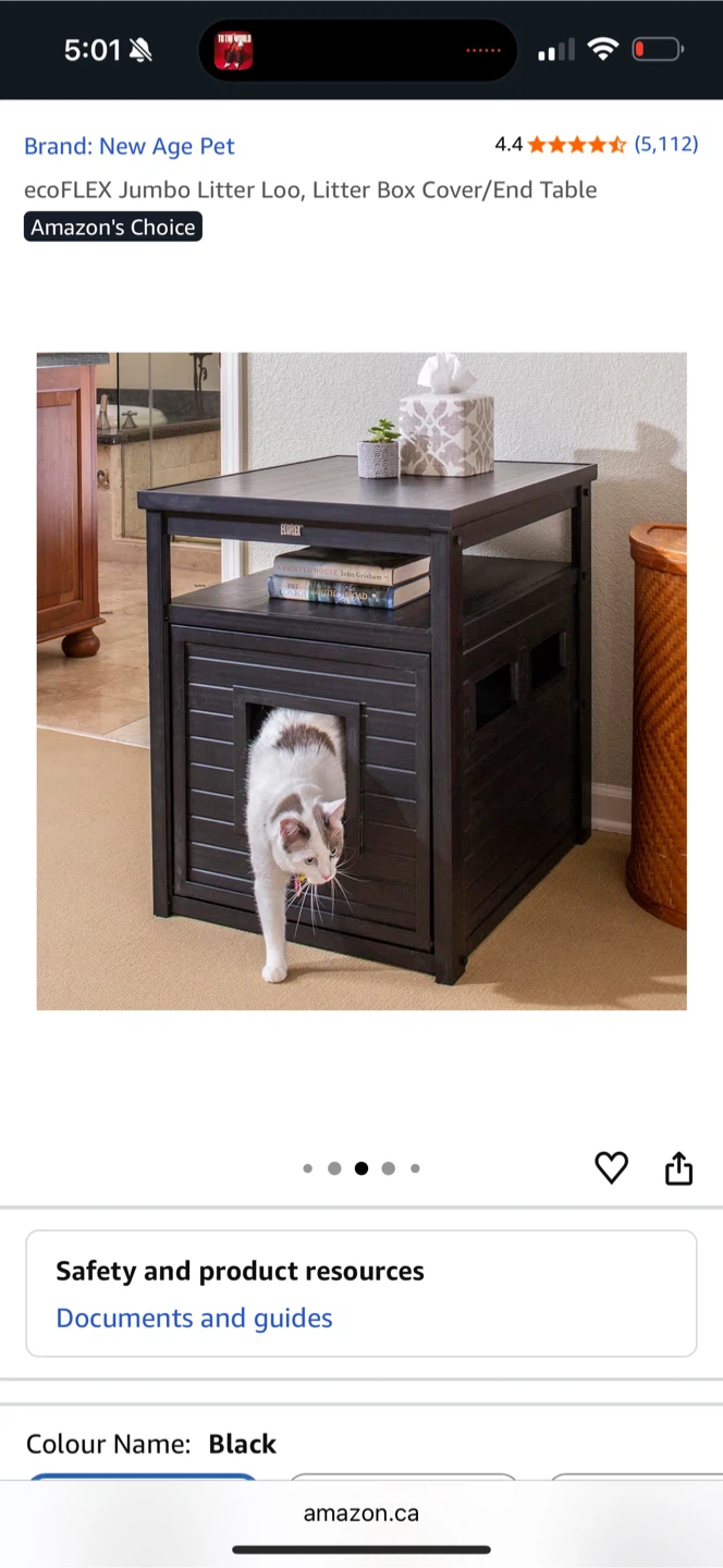 Selling a New Age Pet ecoFLEX Jumbo Litter Loo, which doubles as a litter box cover and an end table. It's in black and jumbo size, providing a discreet and stylish way to manage your cat's litter box!