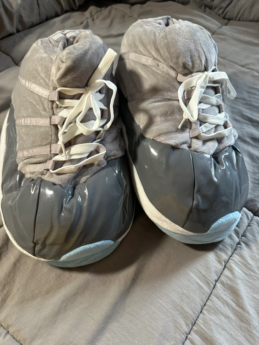 Cozy up with these unique Jordan 11 inspired slippers! They're made with a soft fabric upper, sock, and sole. The size is 44, and they were made in China. Perfect for lounging around the house! Pick up only! East 106th st and 1st ave!